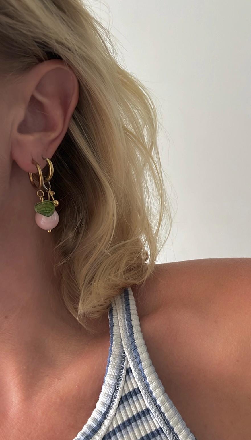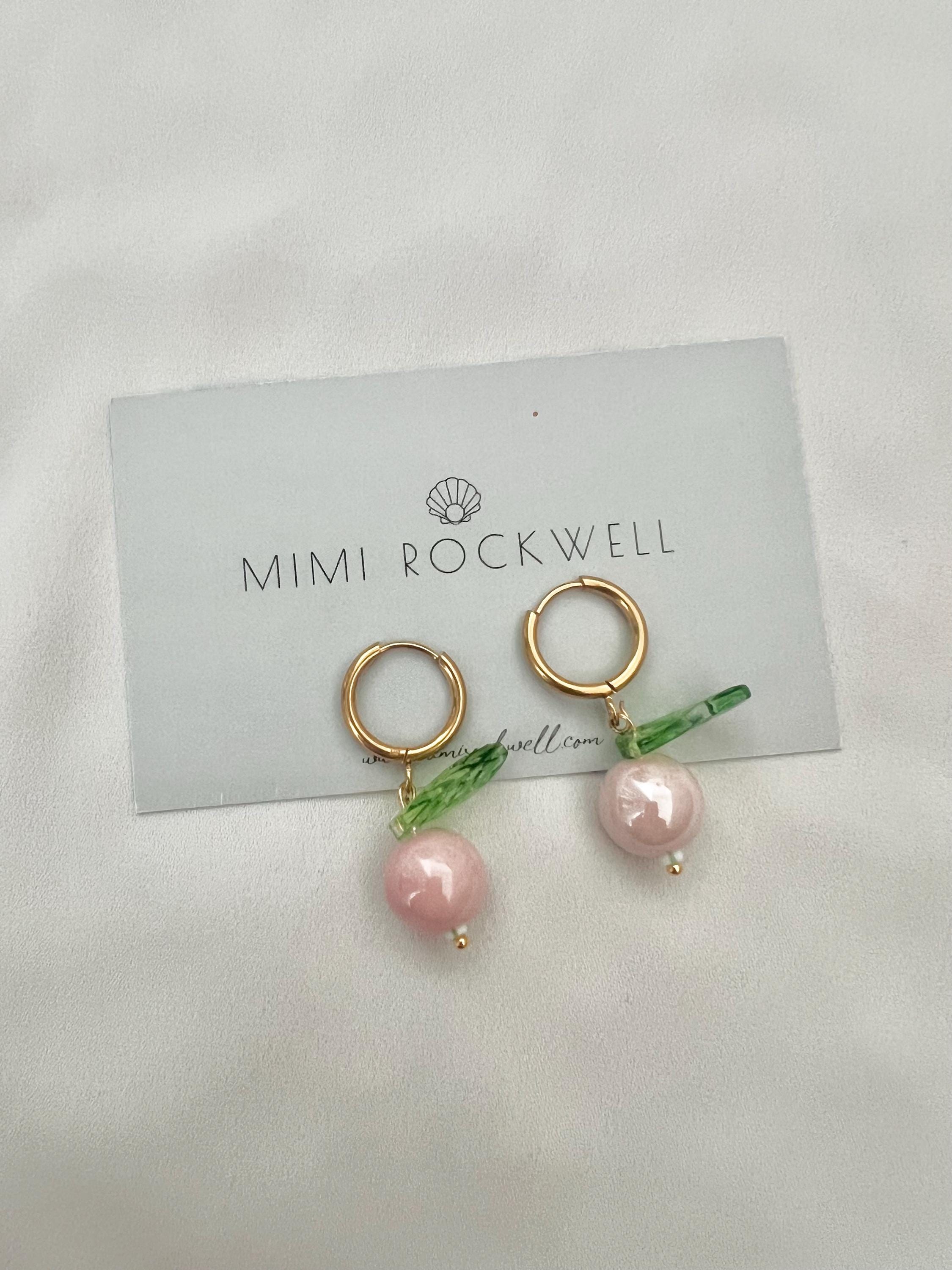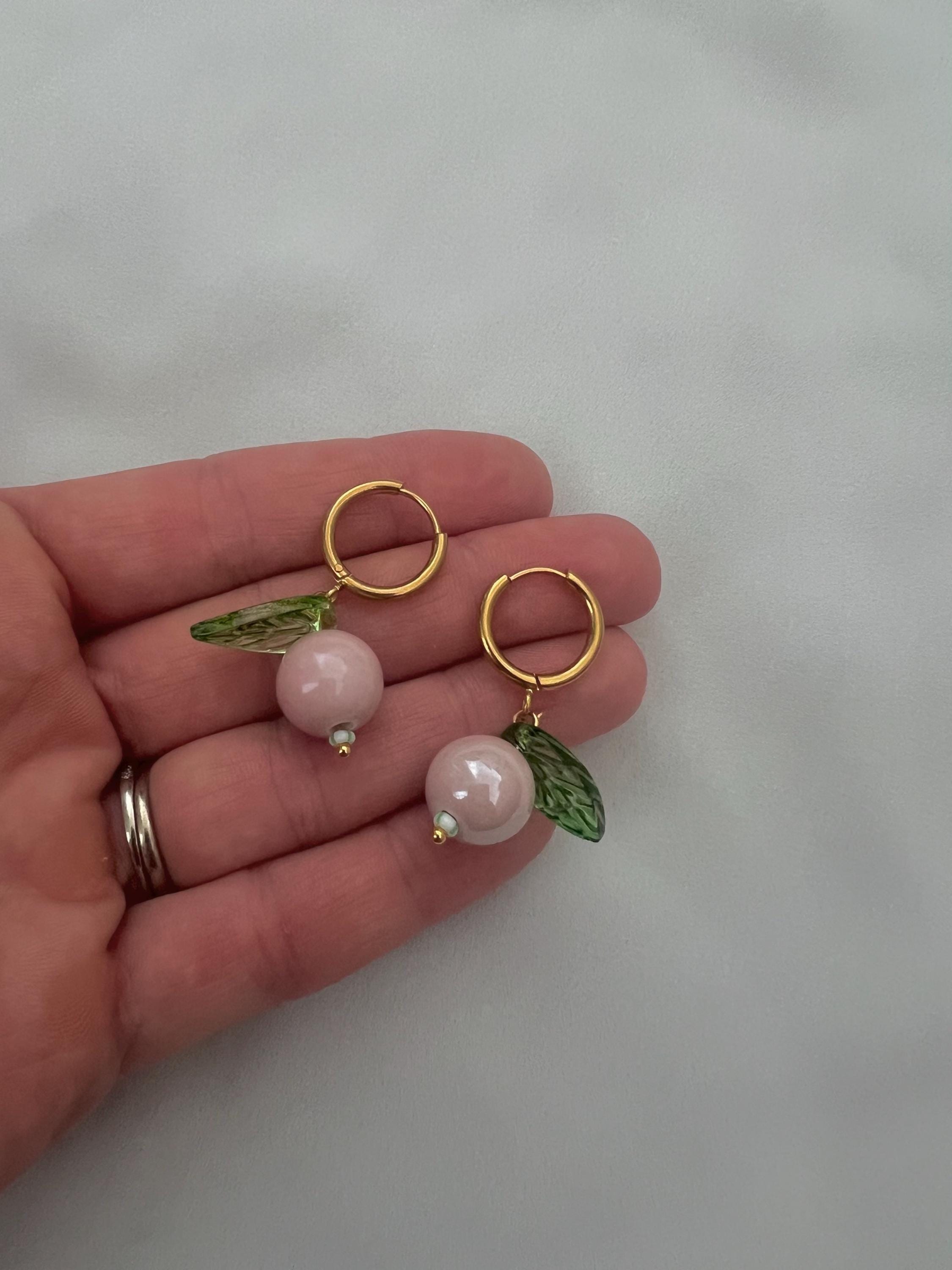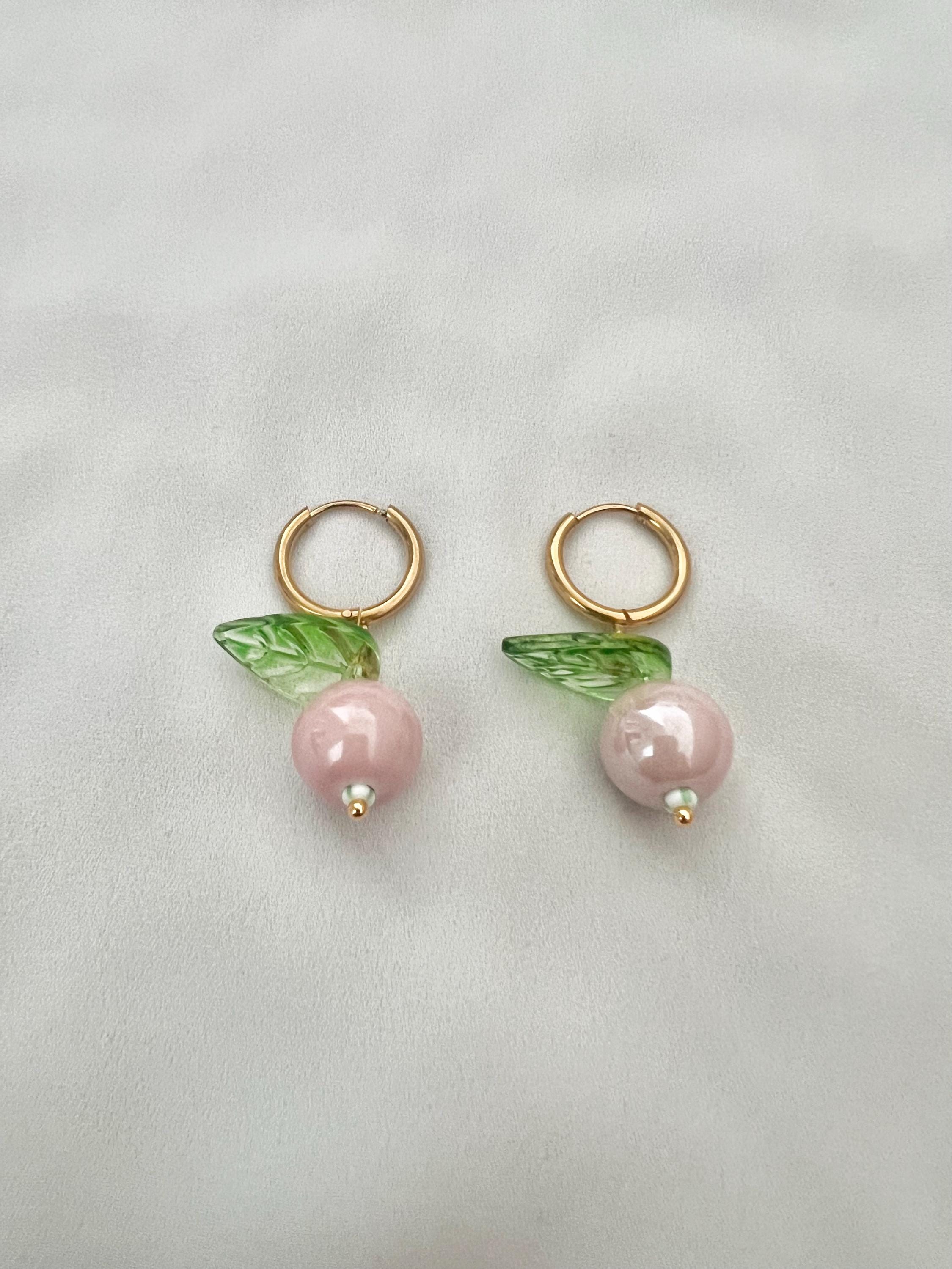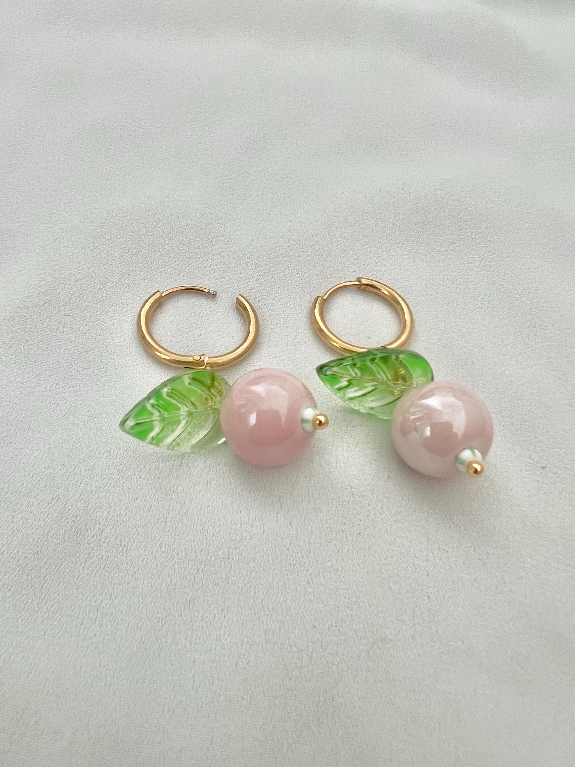 Pink berry leaf gold hoop earrings
