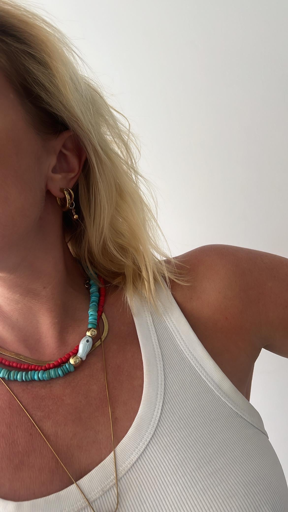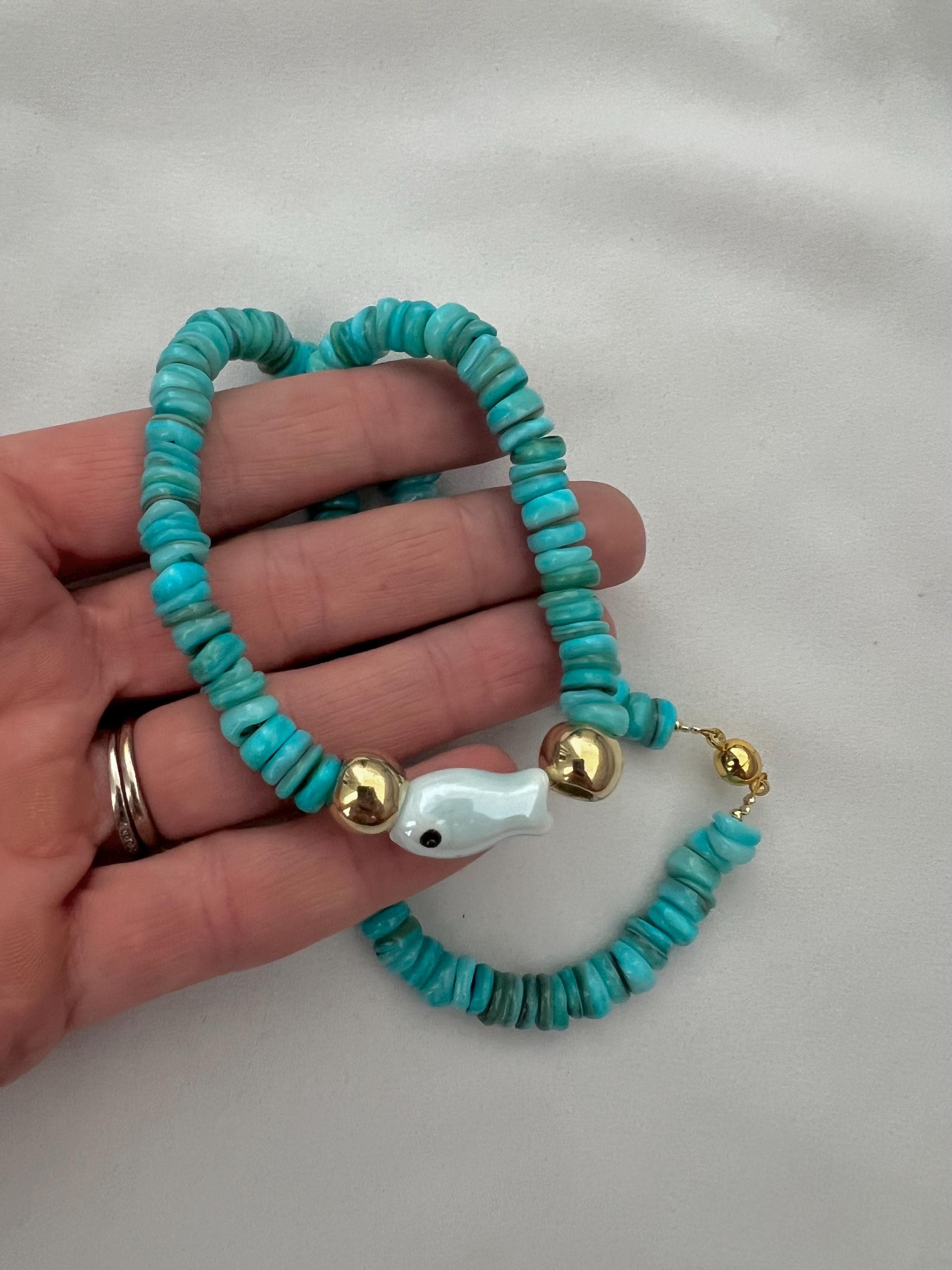 Light blue fish gold turquoise Freshwater shell bead necklace