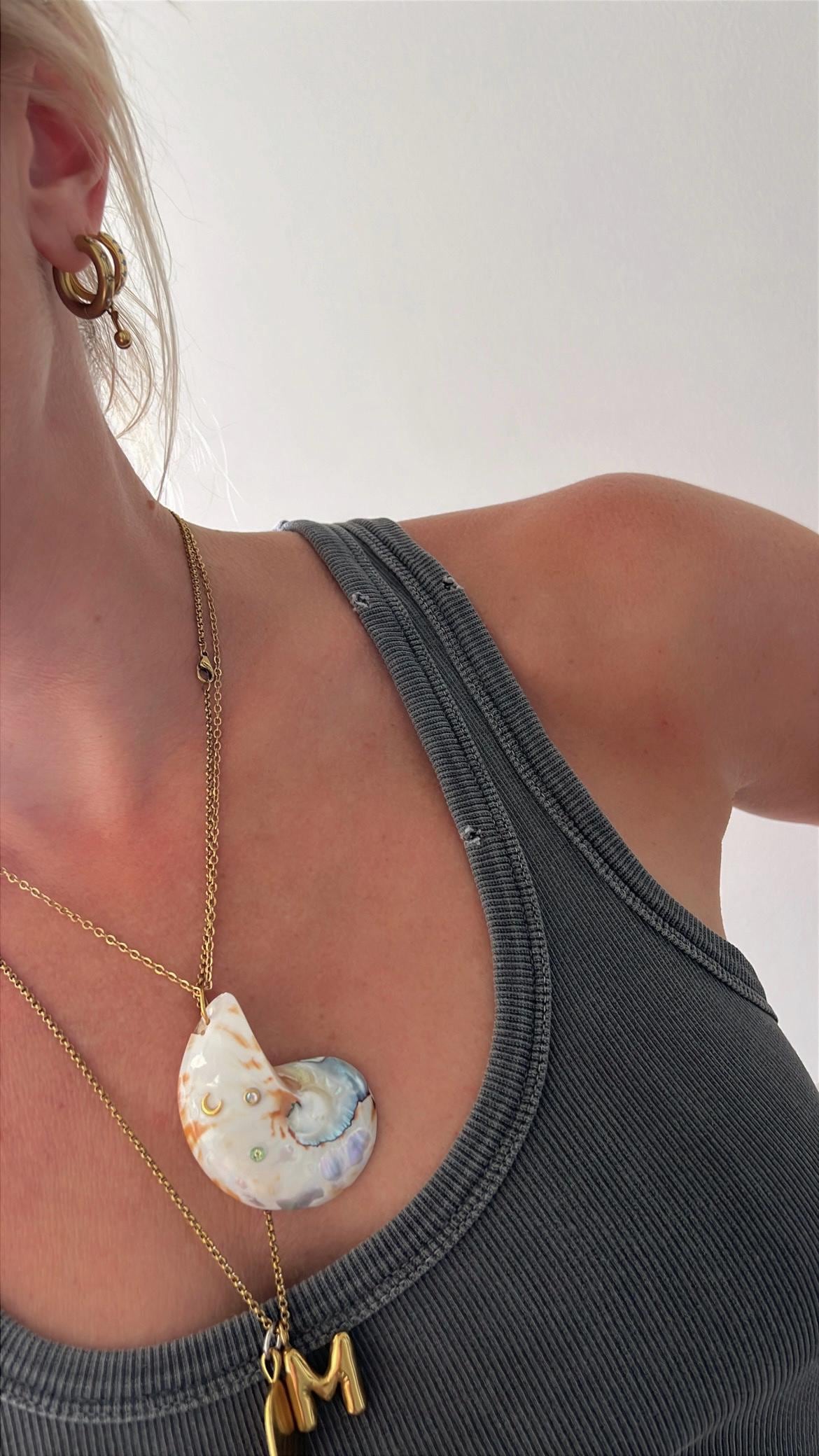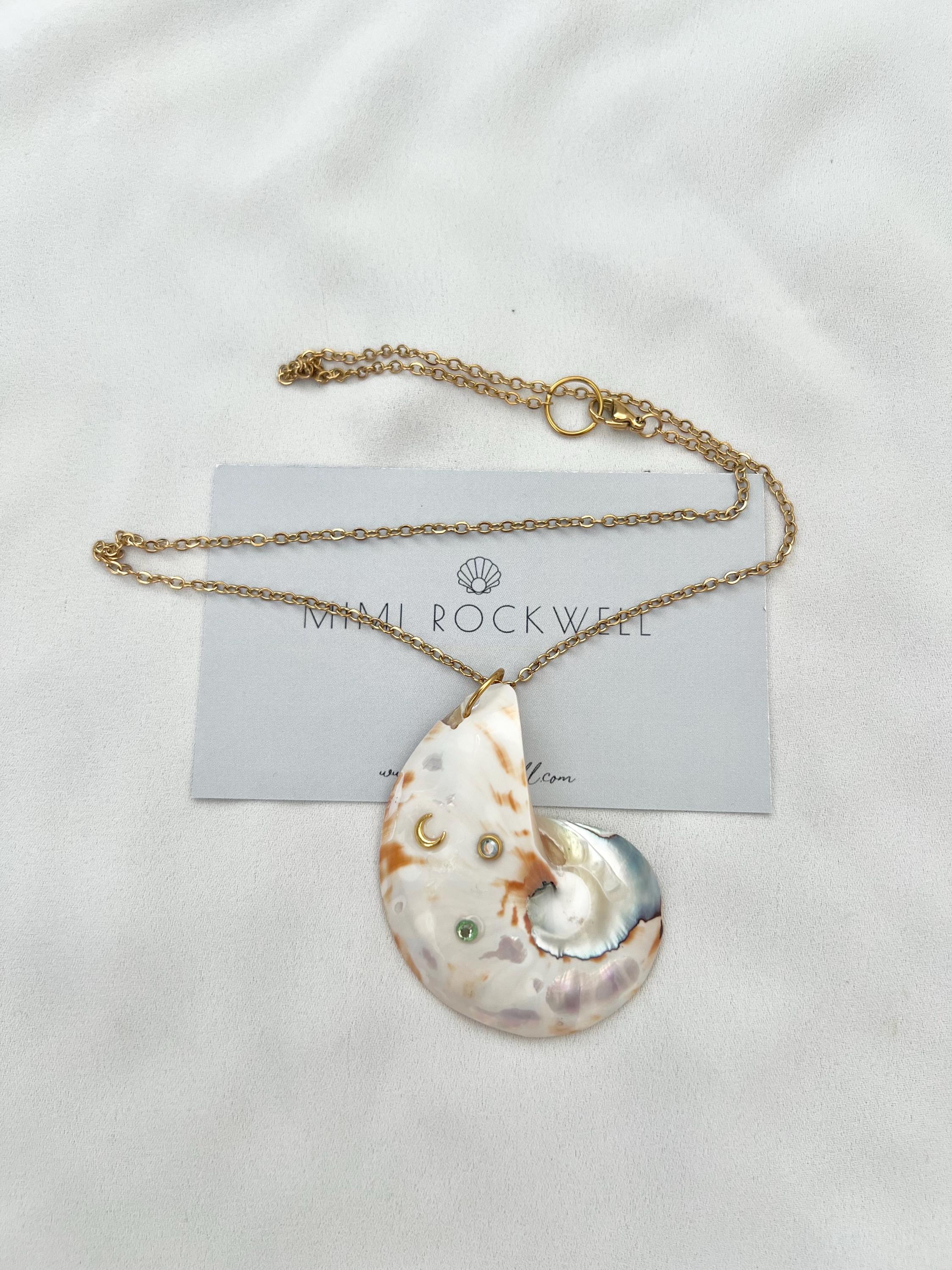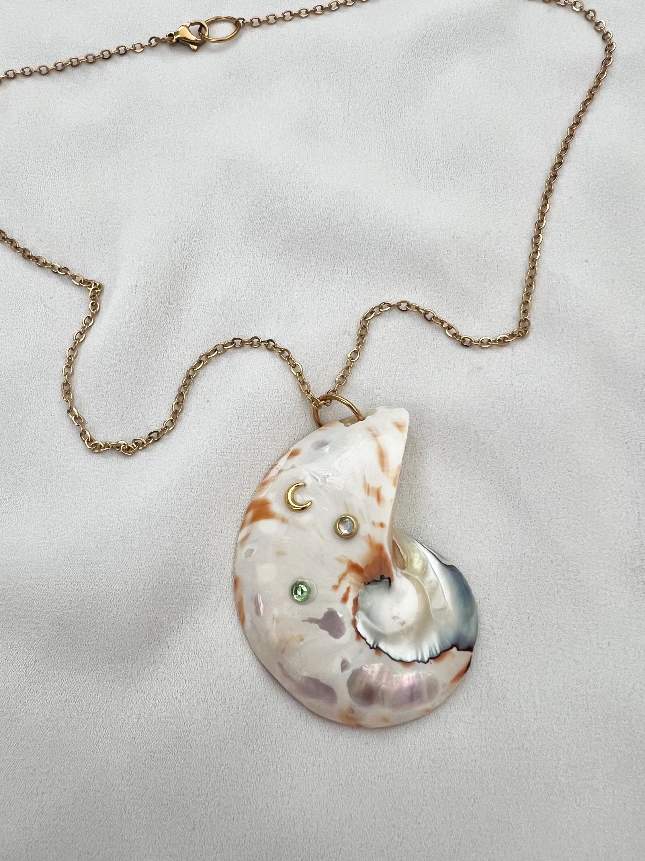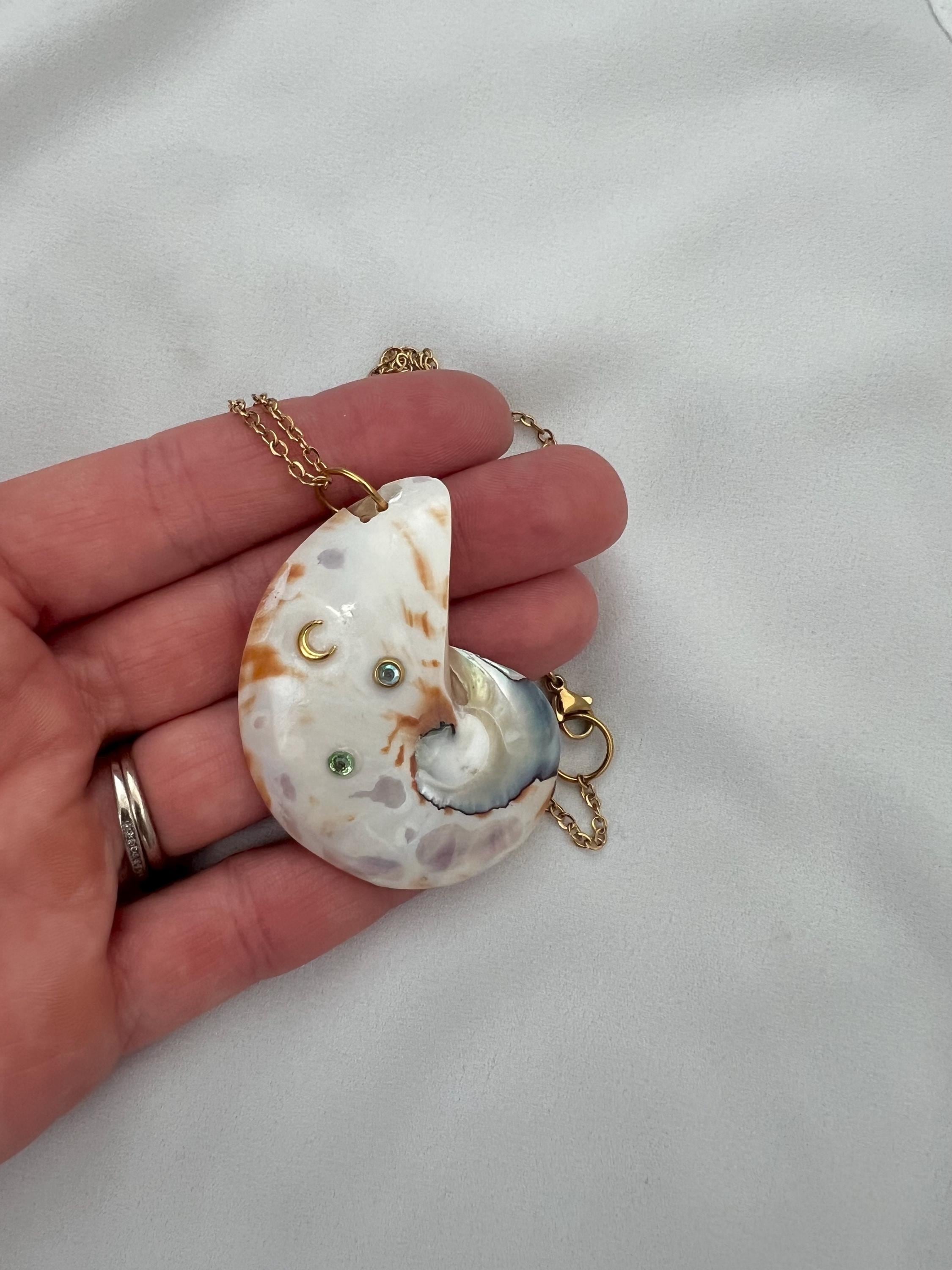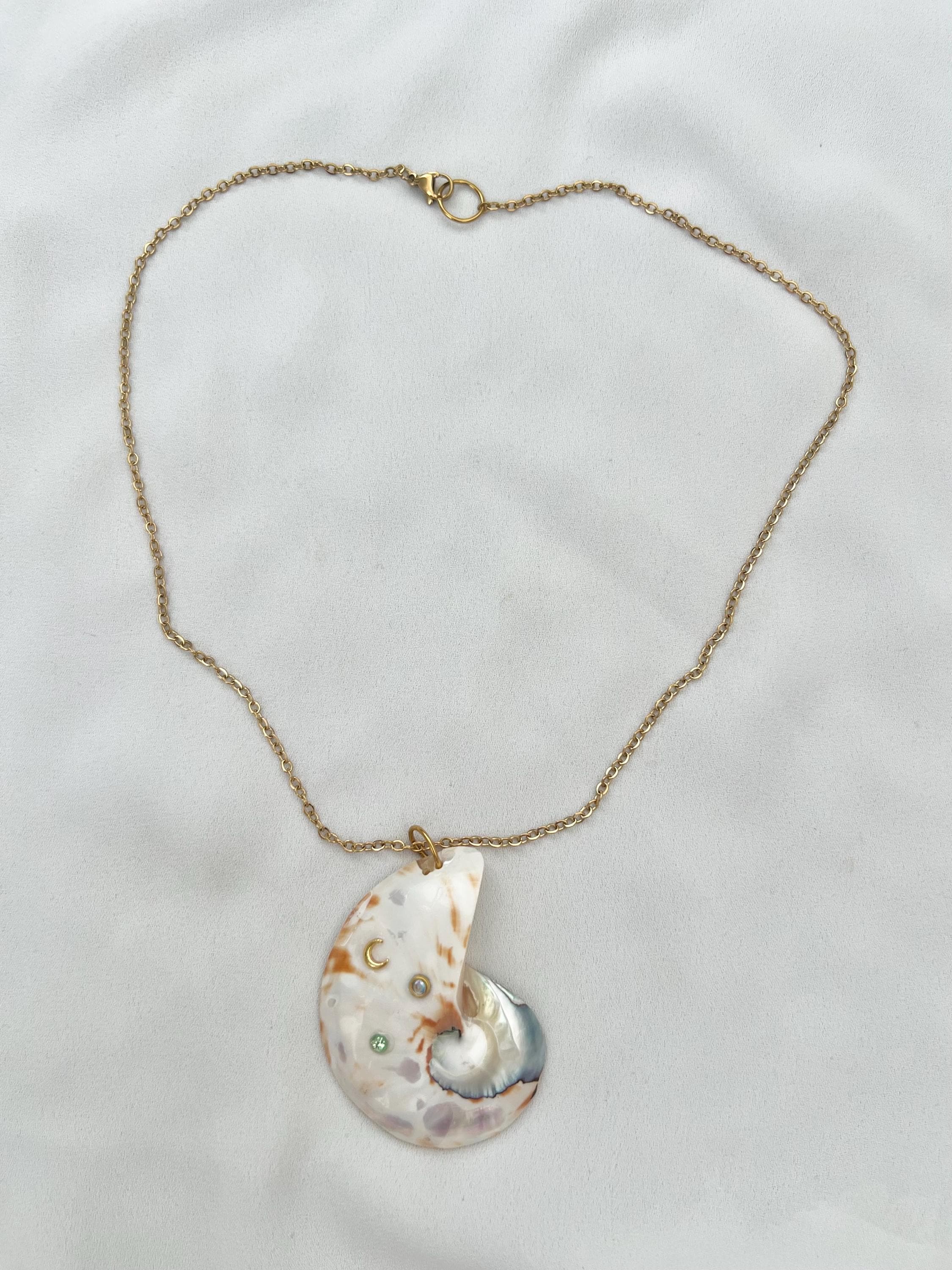 * Unique one of a kind Nautilus shell. Please note that there is a small crack in the shell next to the hole at the top.