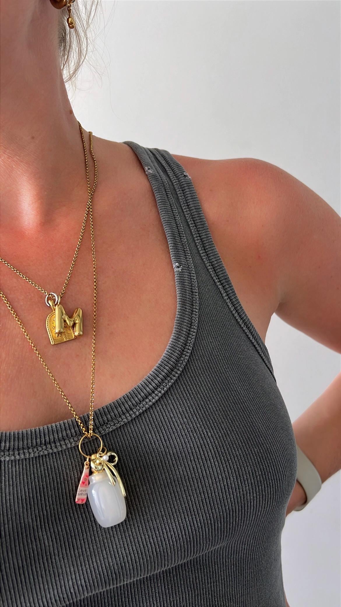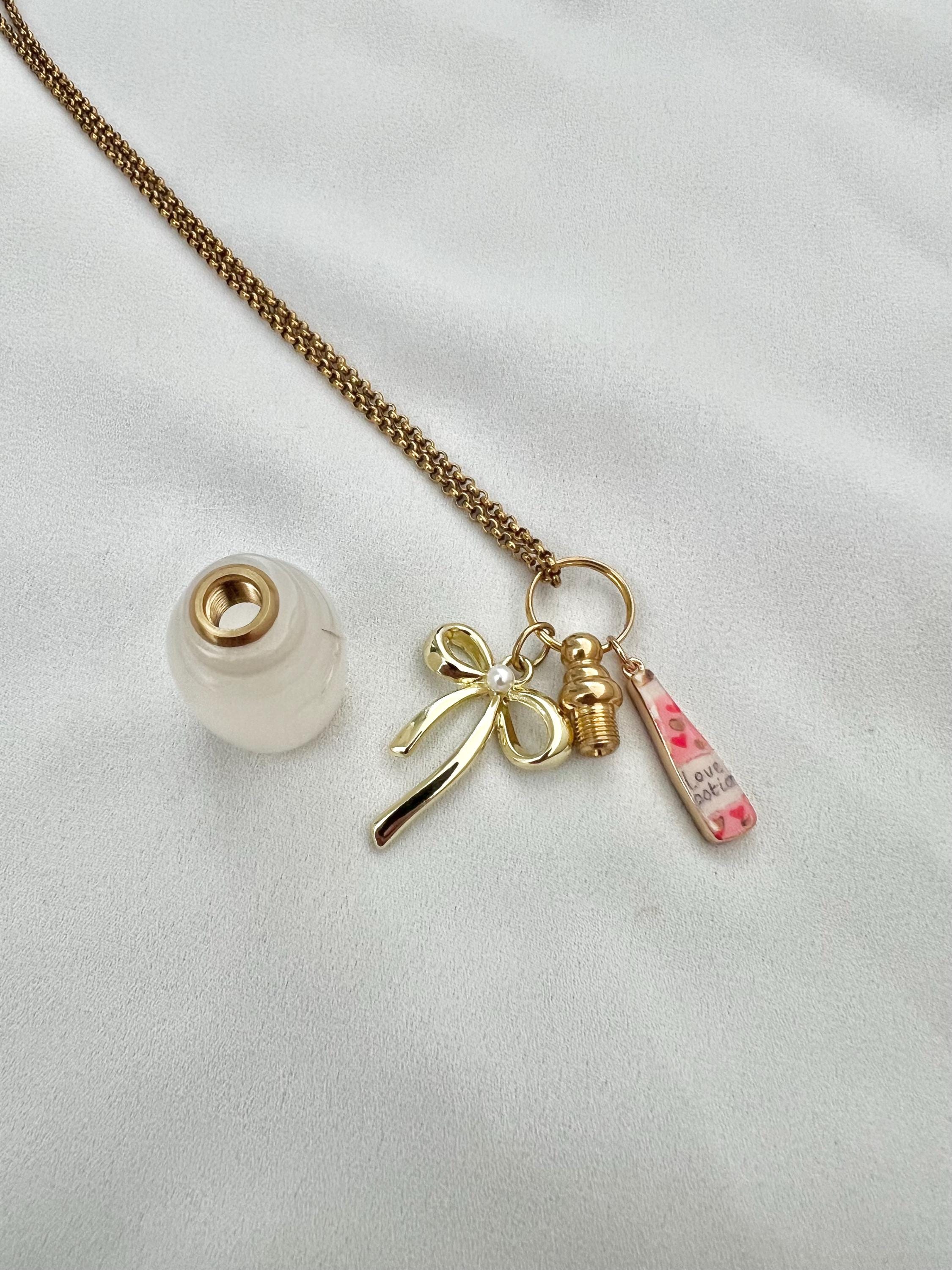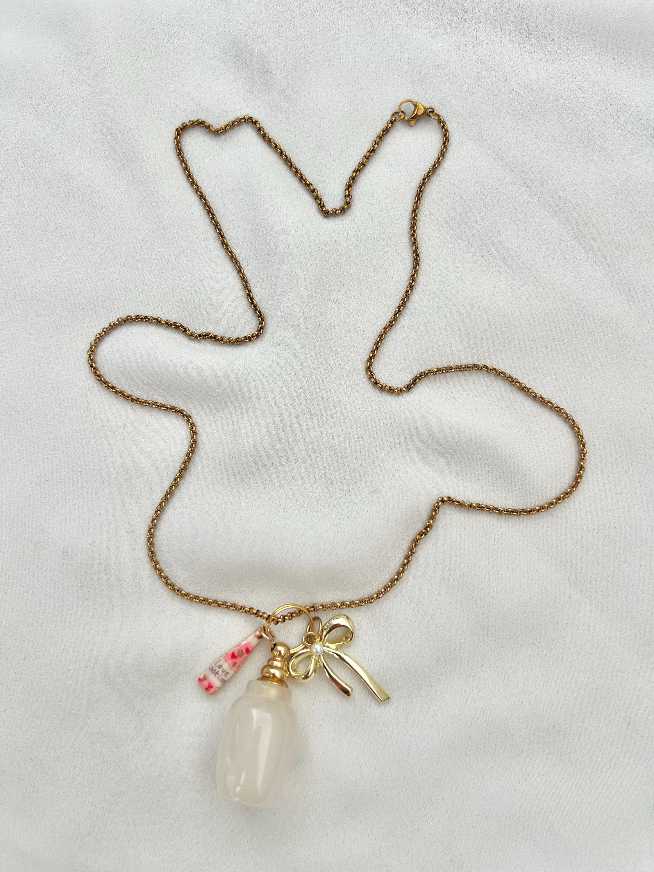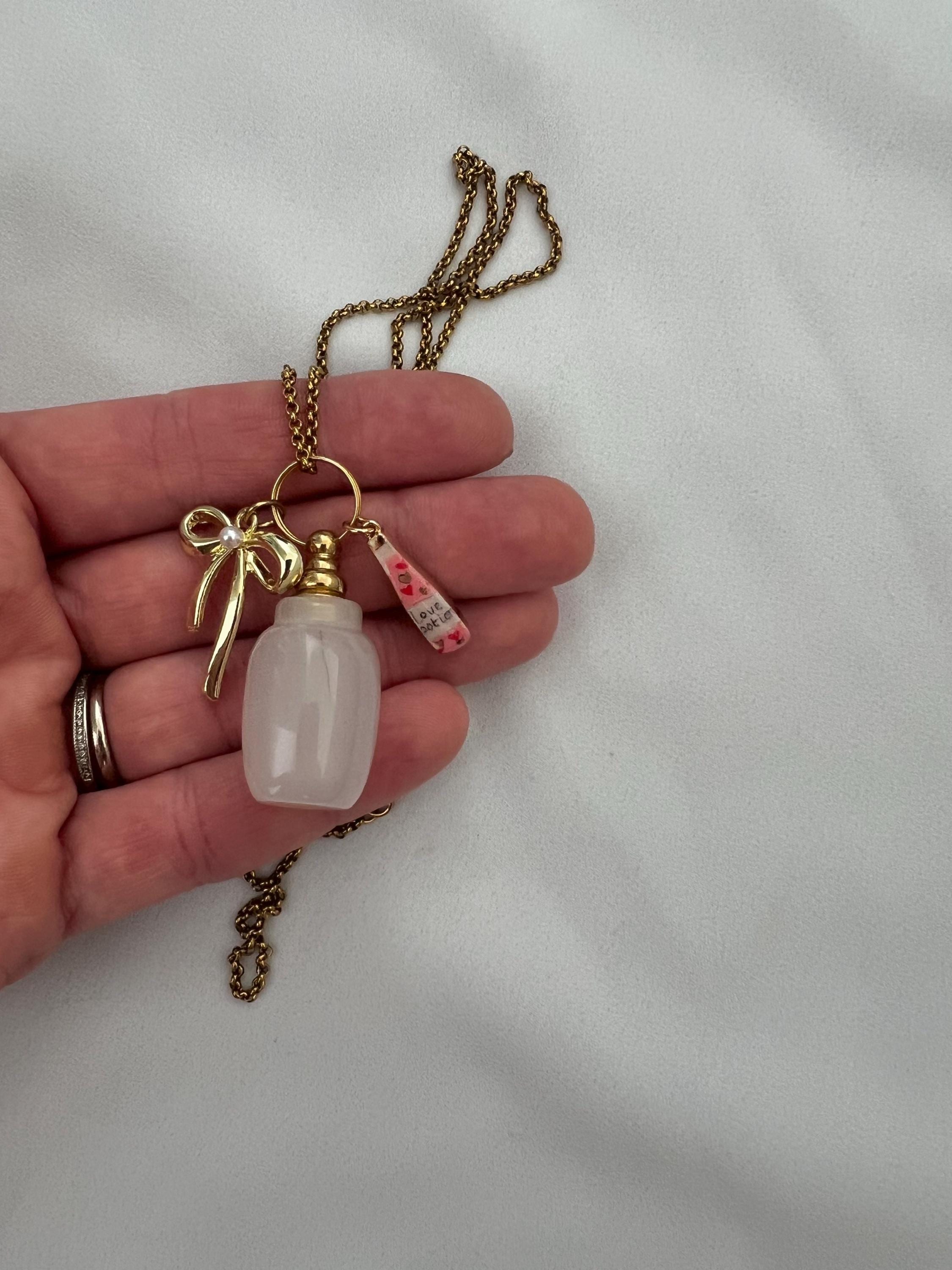 Love potion White Agate crystal stone bottle bow charm gold chain necklace