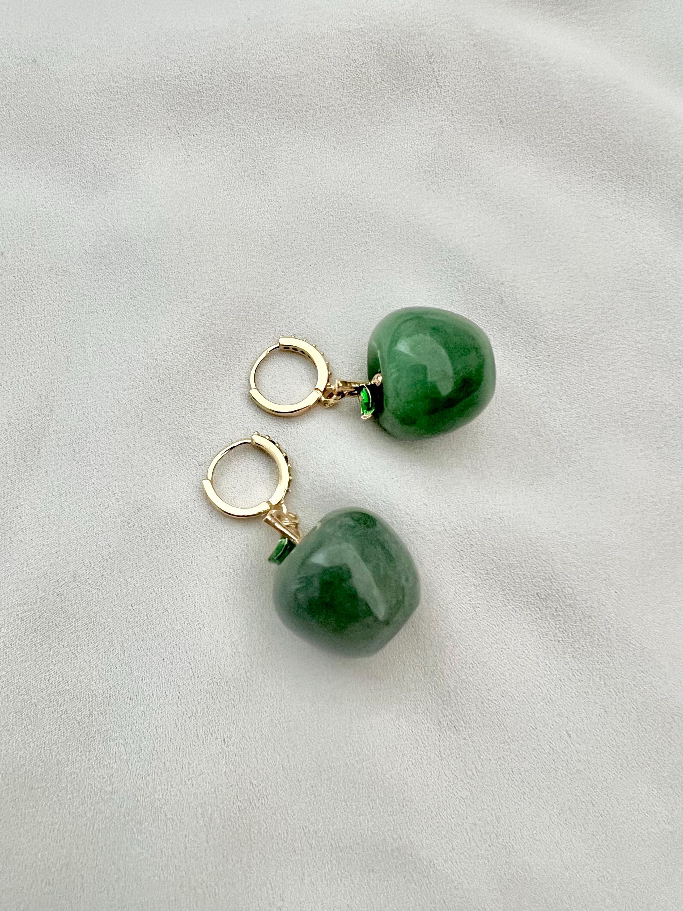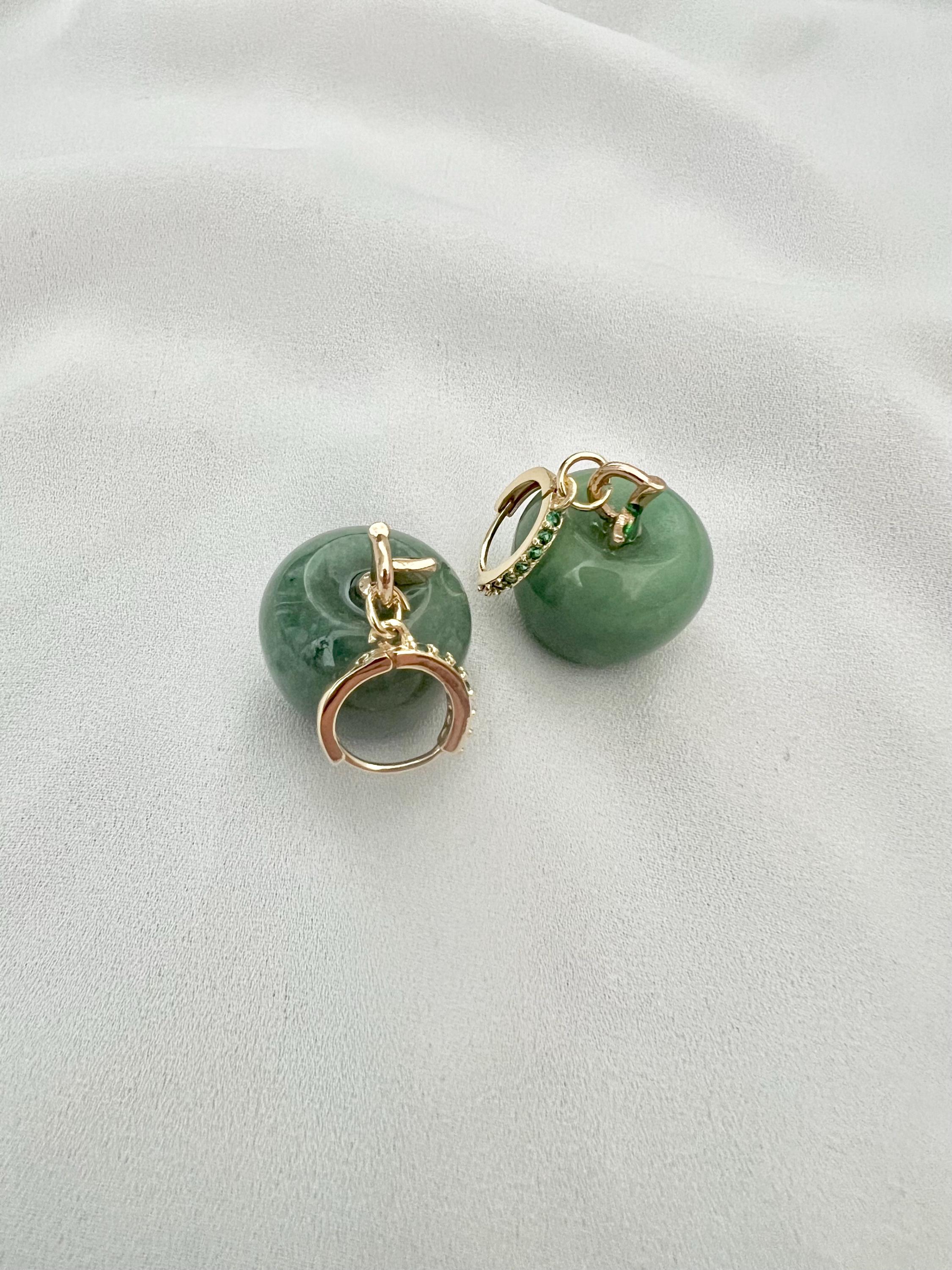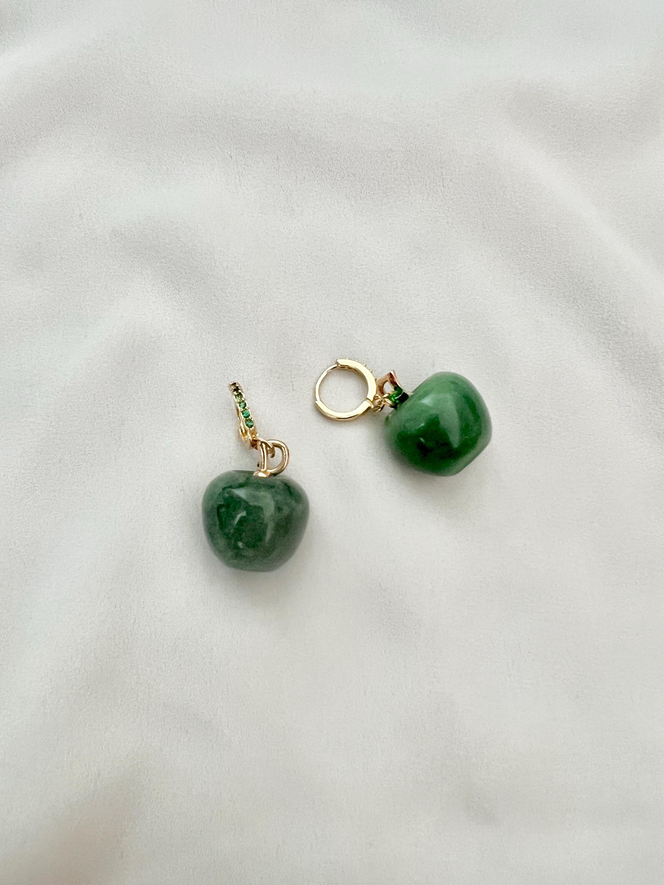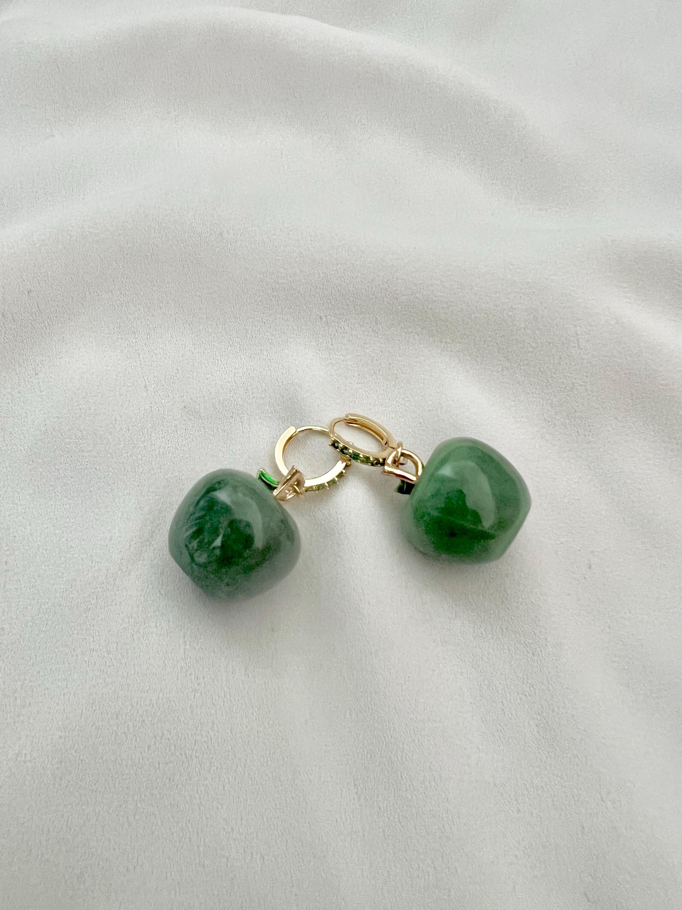 Green apple Aventurine pendant gemstone cubic zirconia stone gold mini hoops
