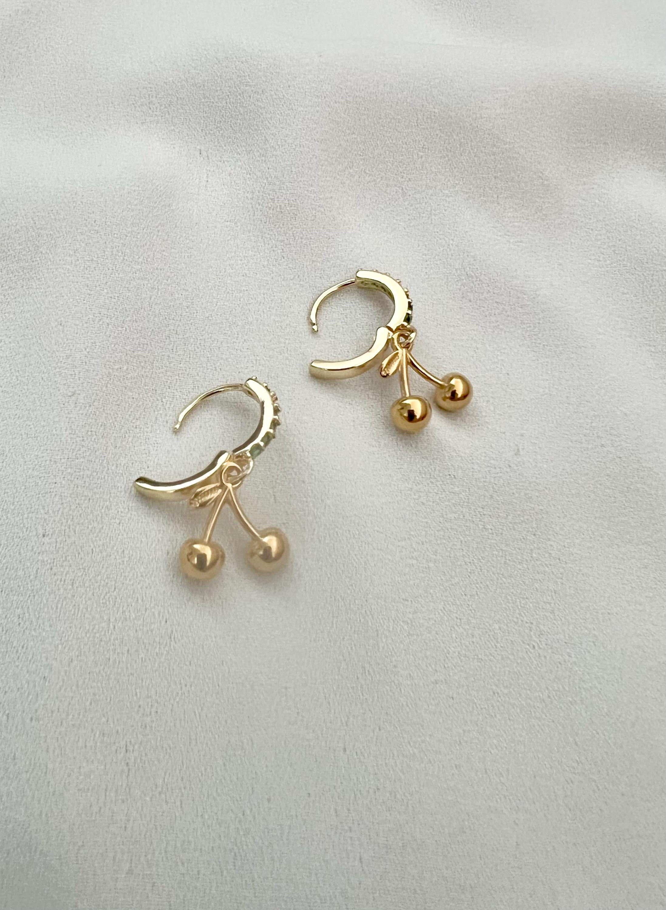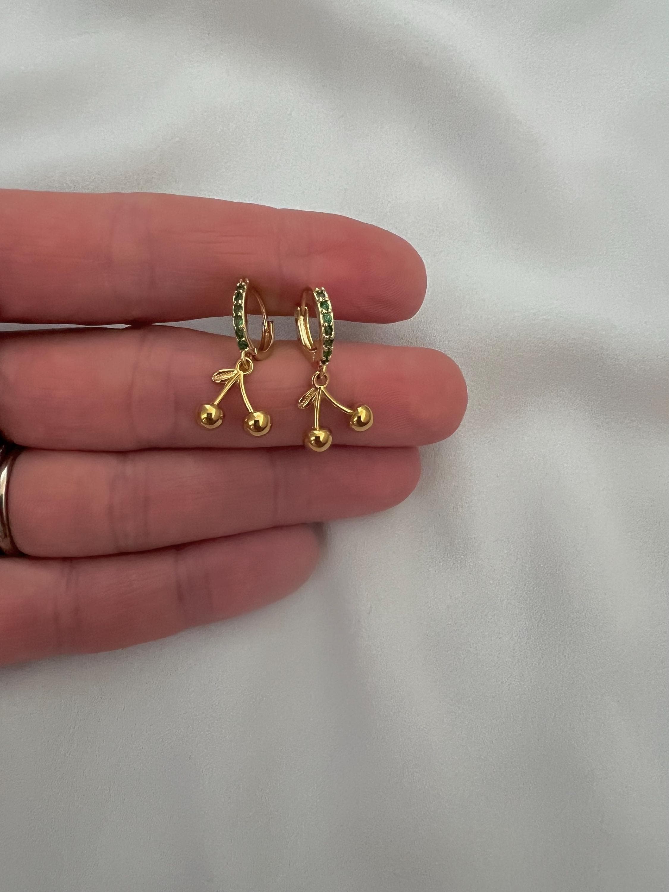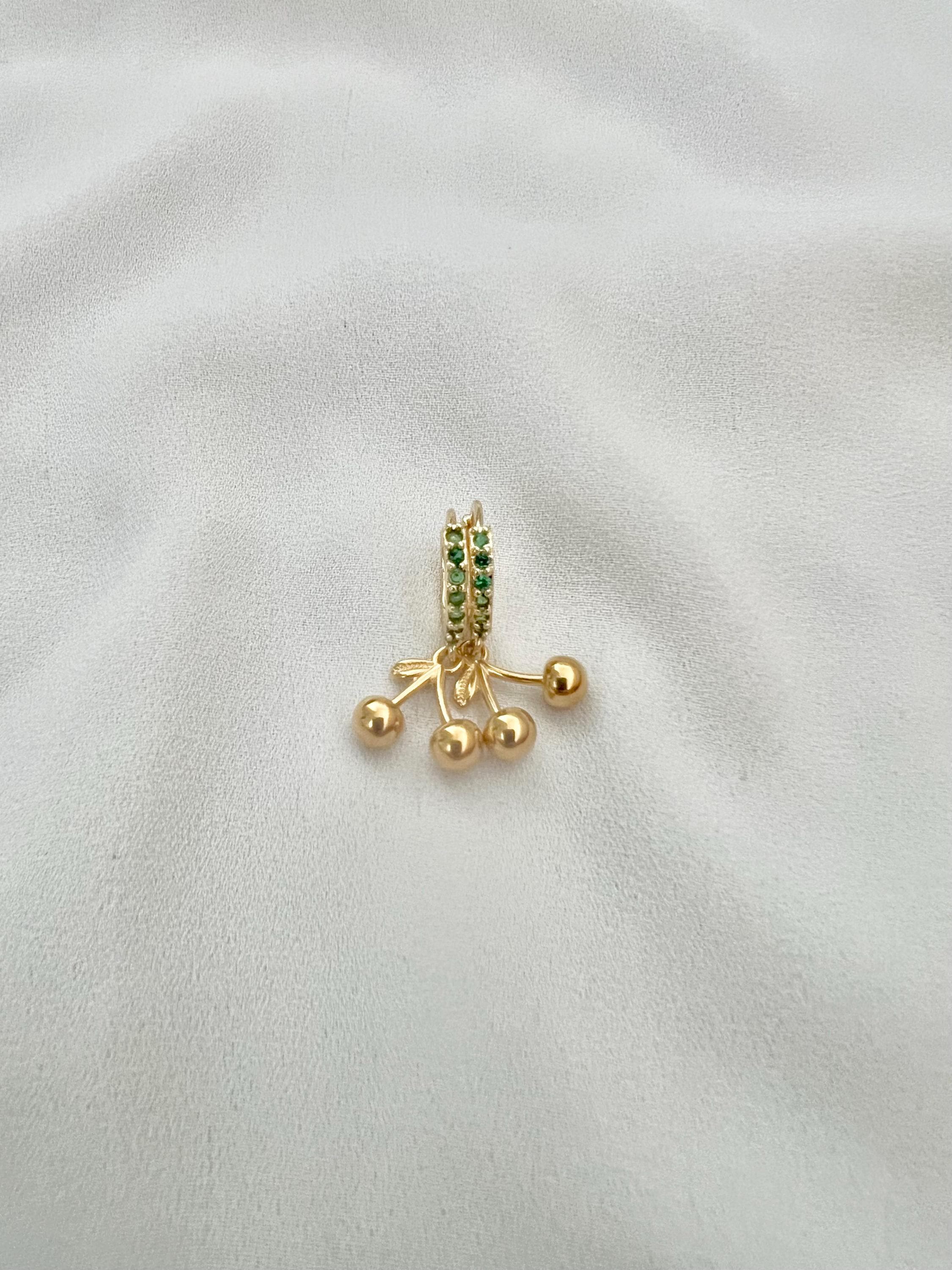 Cherry charm green cubic zirconia stone gold mini hoops