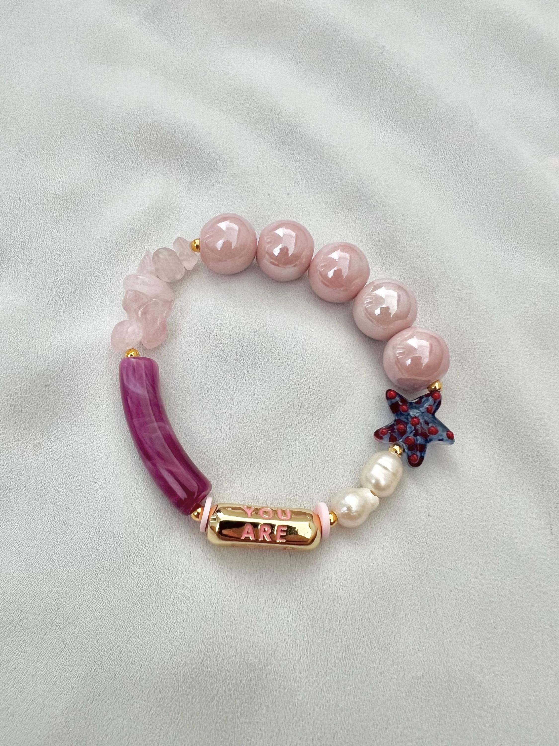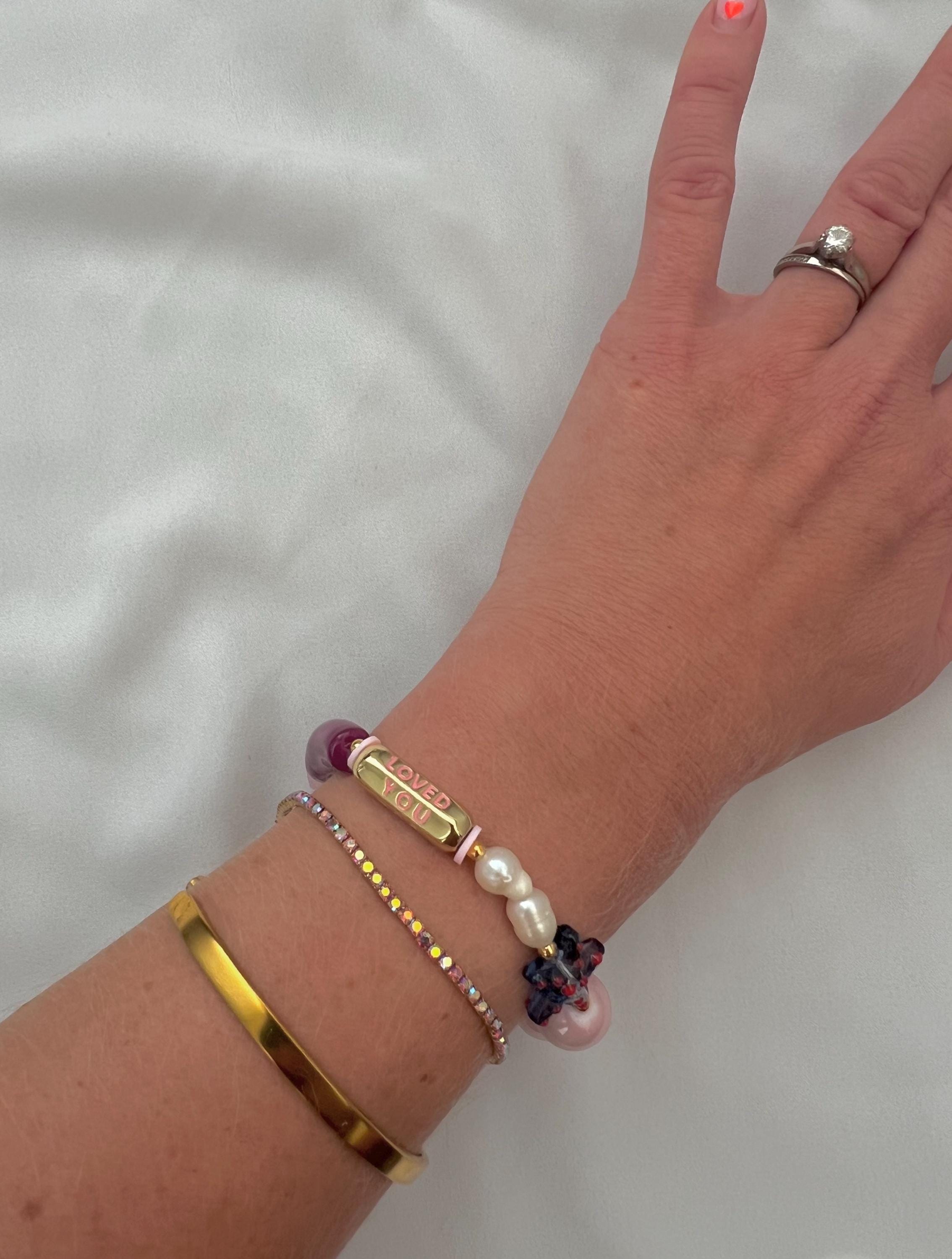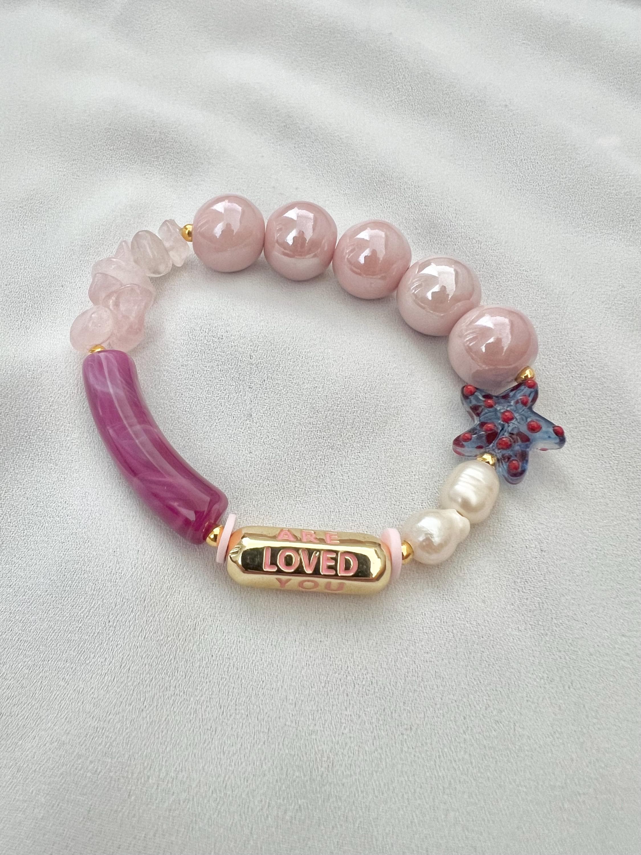 You are loved gold charm pearl rose quartz gemstone pink beads bracelet