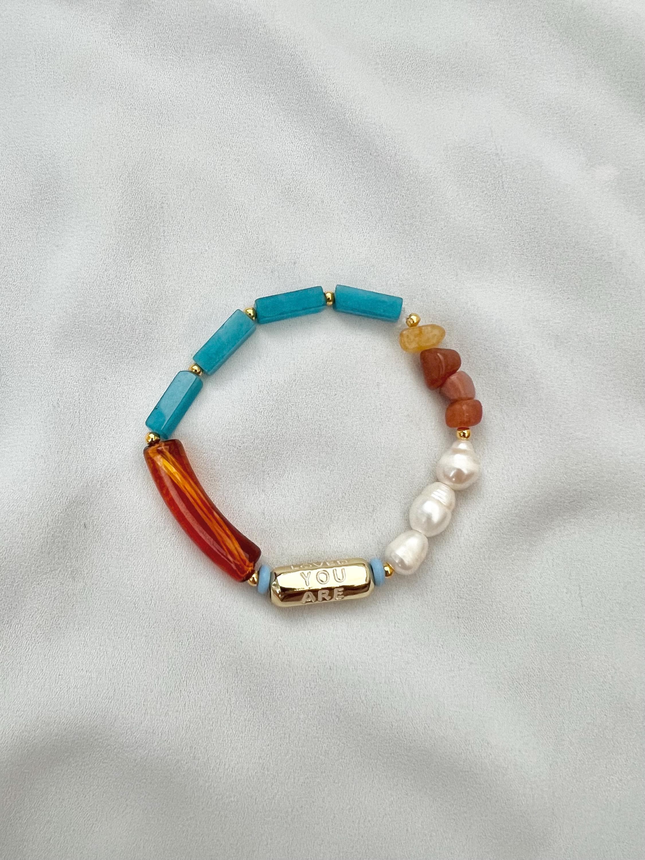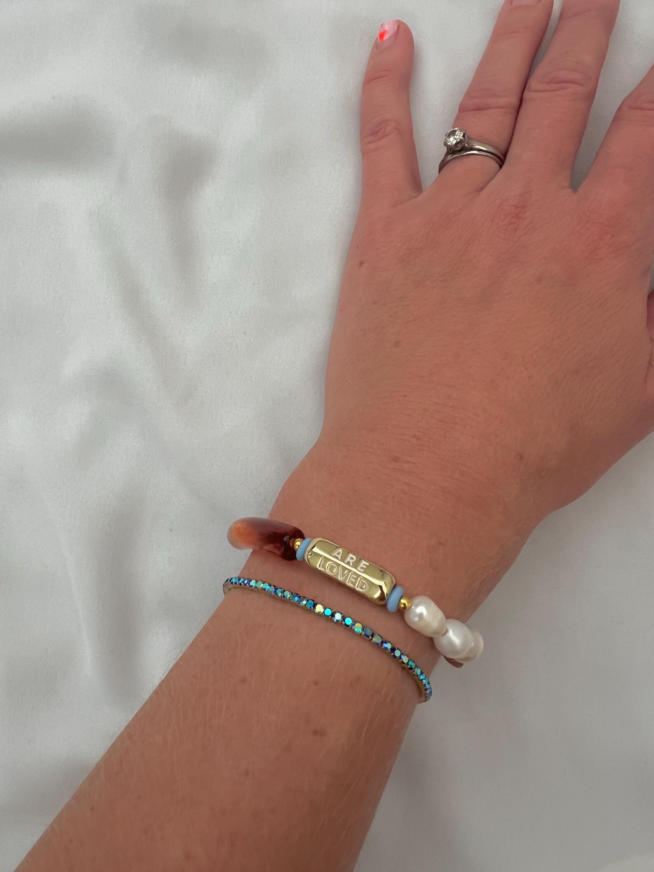 You are loved gold charm pearl Jade Aventurine gemstone bead bracelet