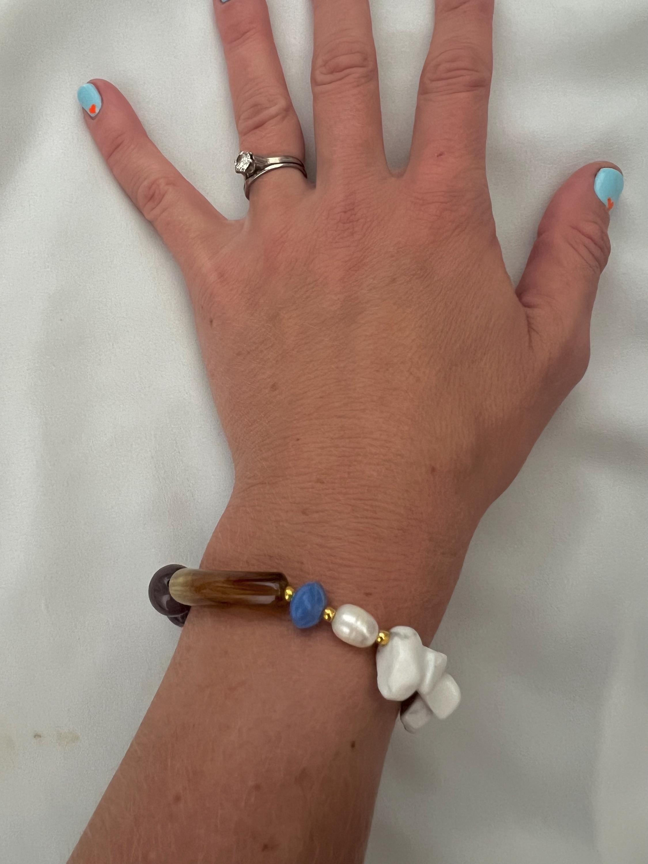 You are loved gold charm pearl Jade Aventurine gemstone bead bracelet