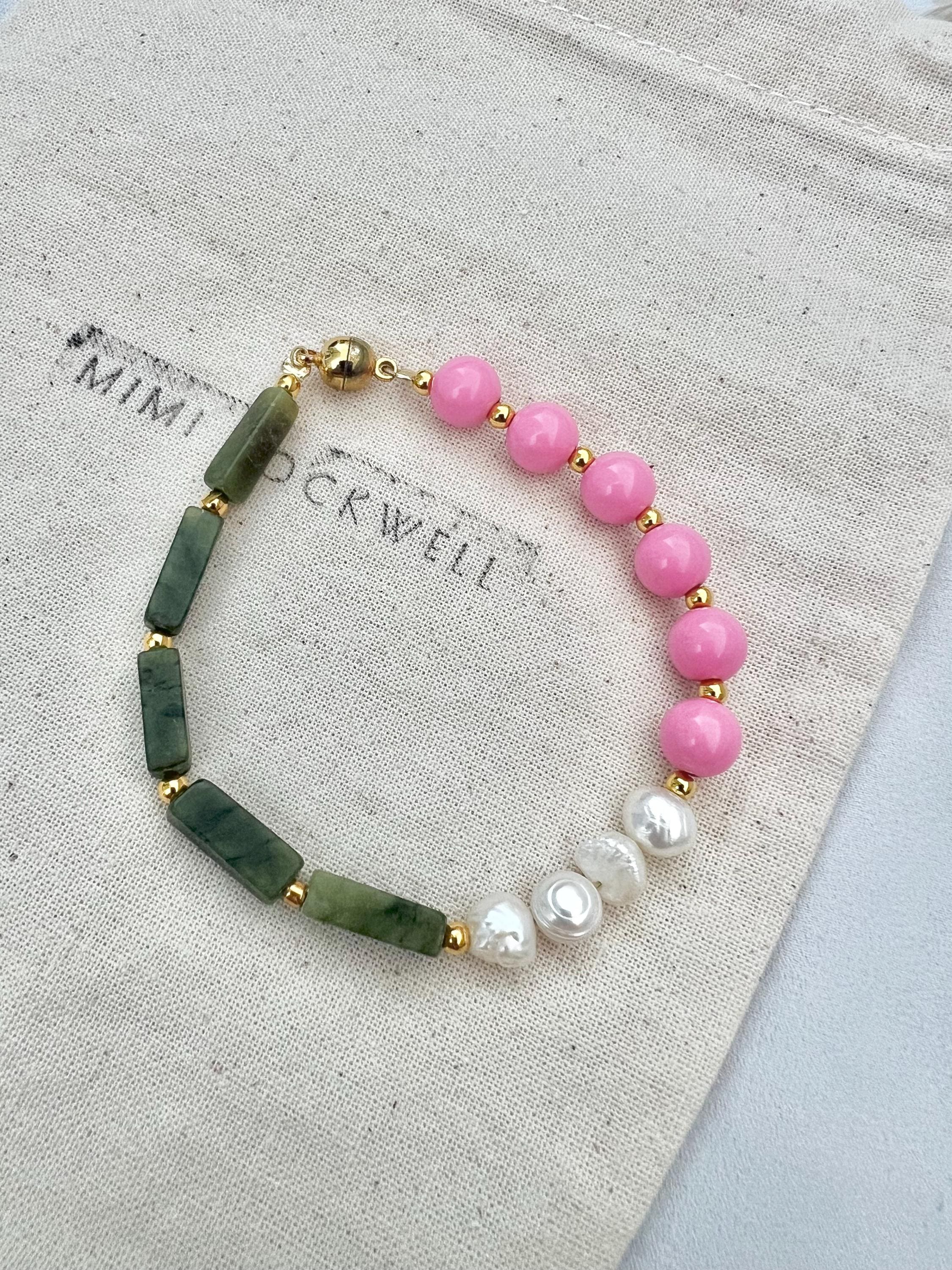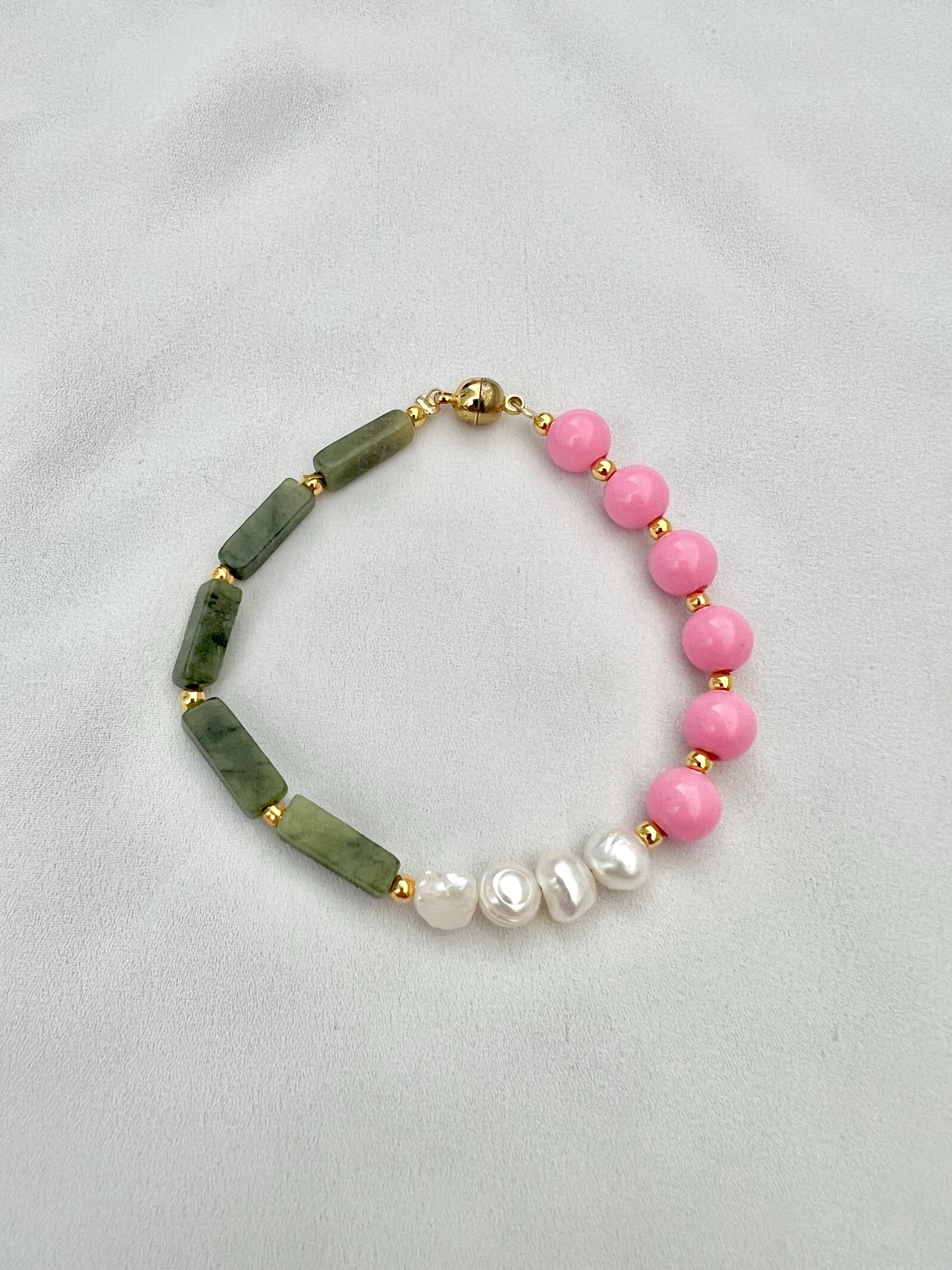 Green Jade Freshwater pearl pink bead magnetic lock bracelet