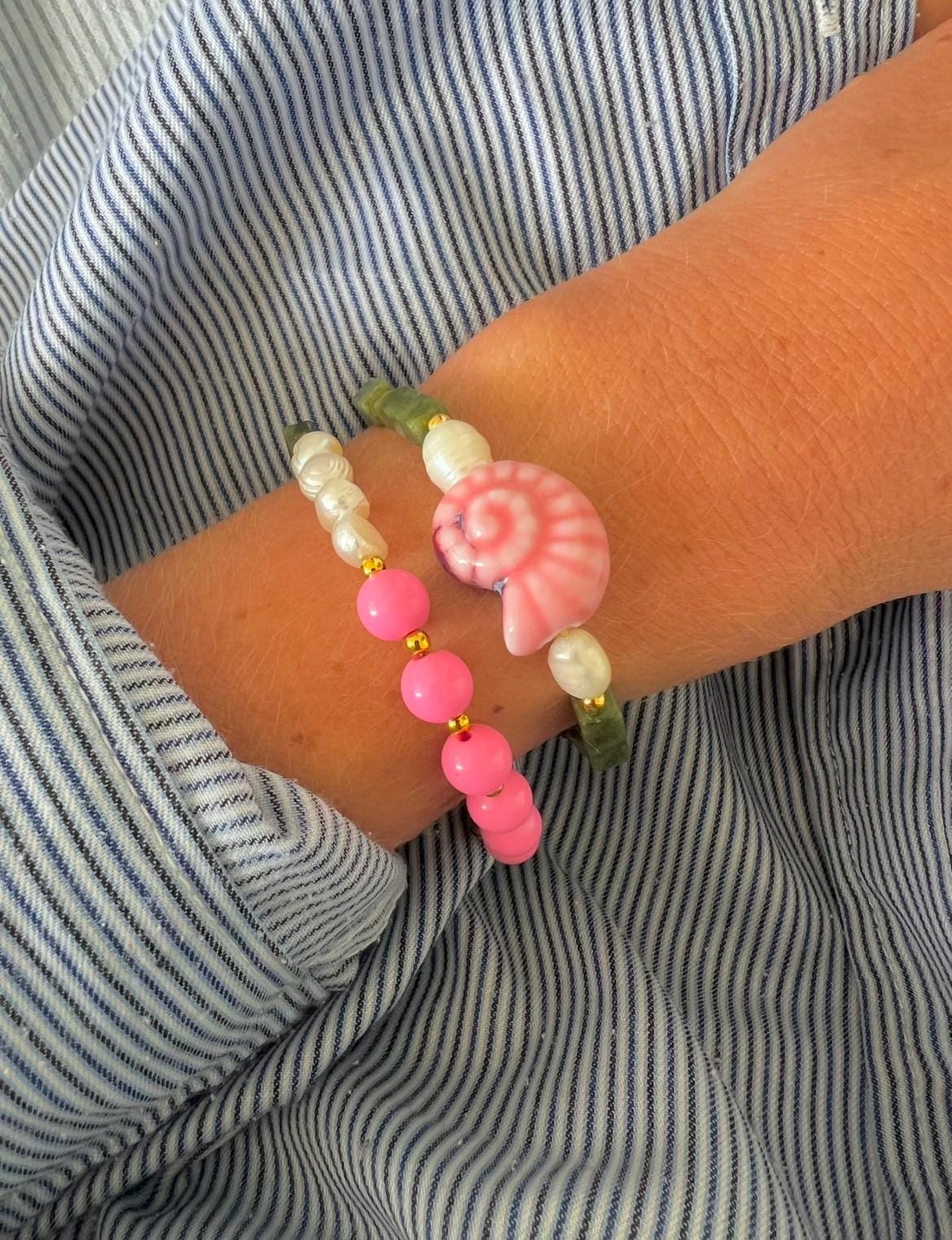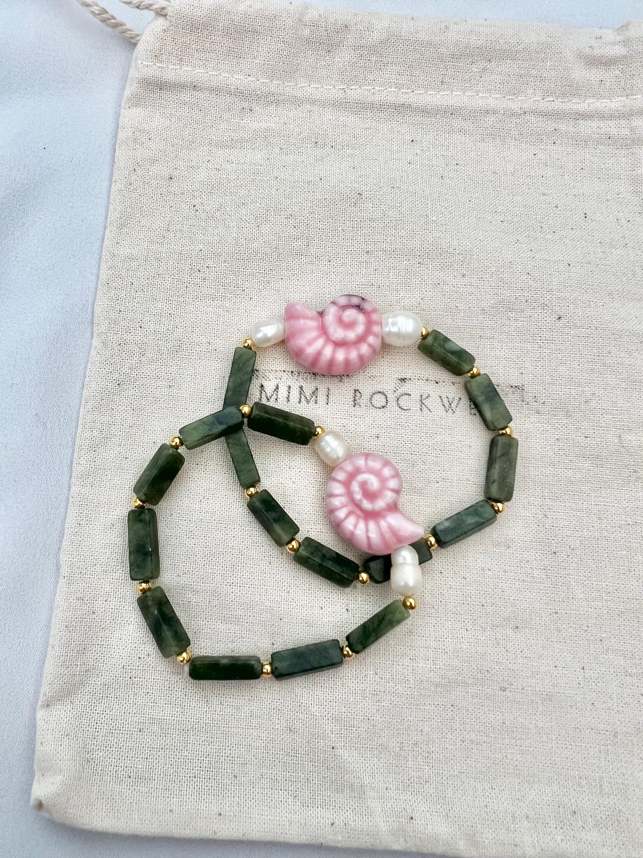 Pink ceramic shell green Jade Freshwater pearl beaded bracelet