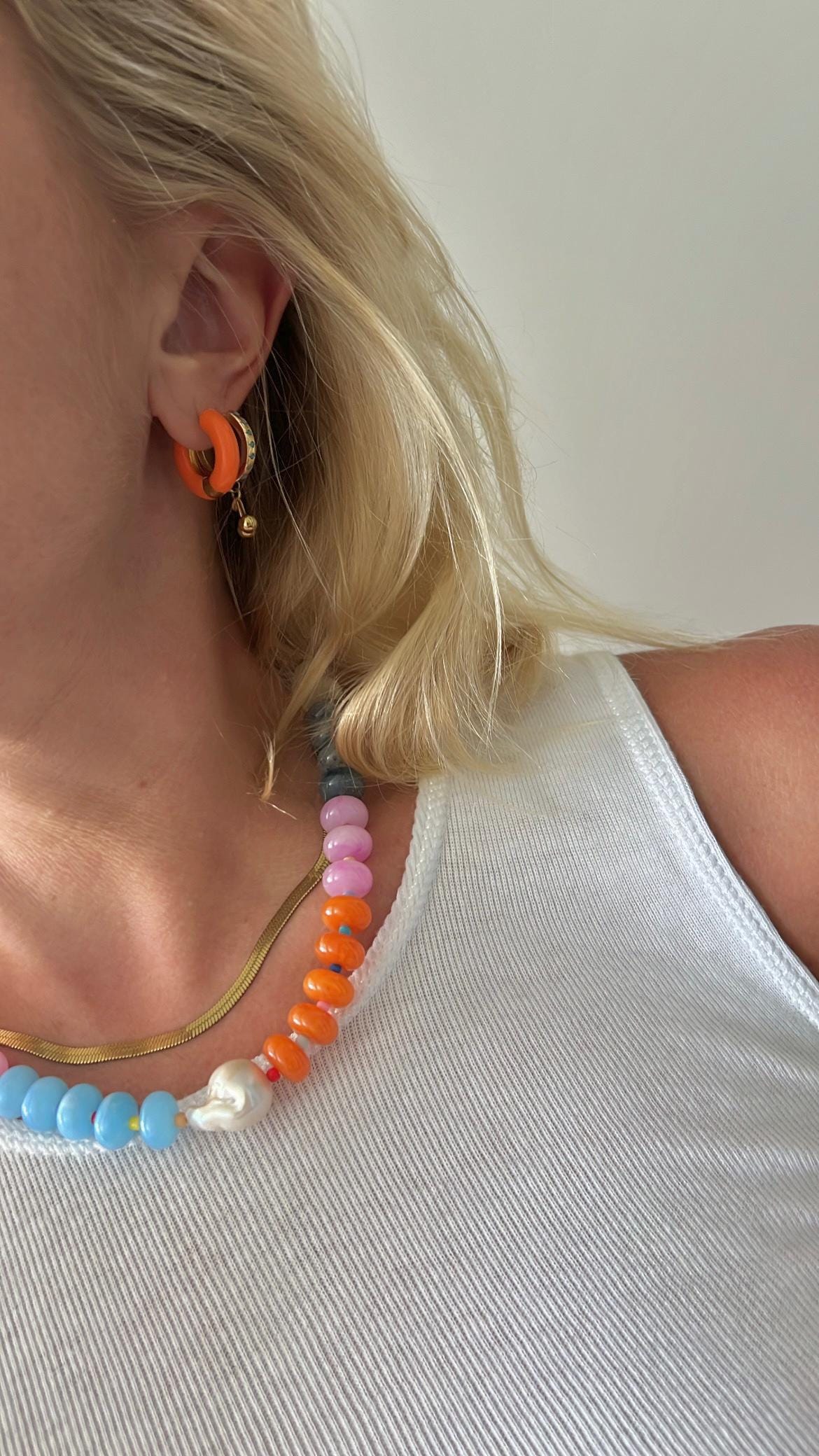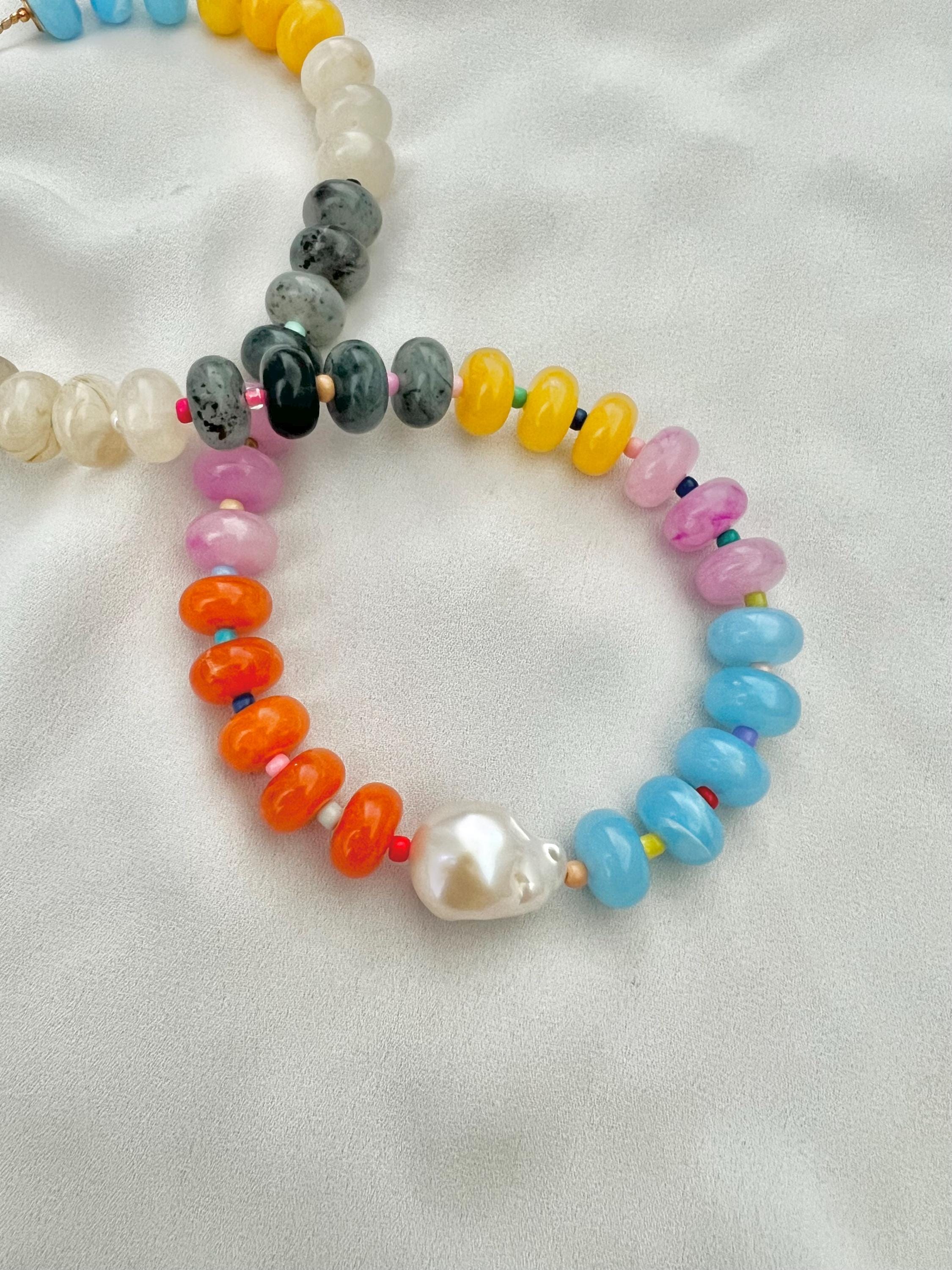Baroque pearl multicoloured rondelle bead gold choker necklace