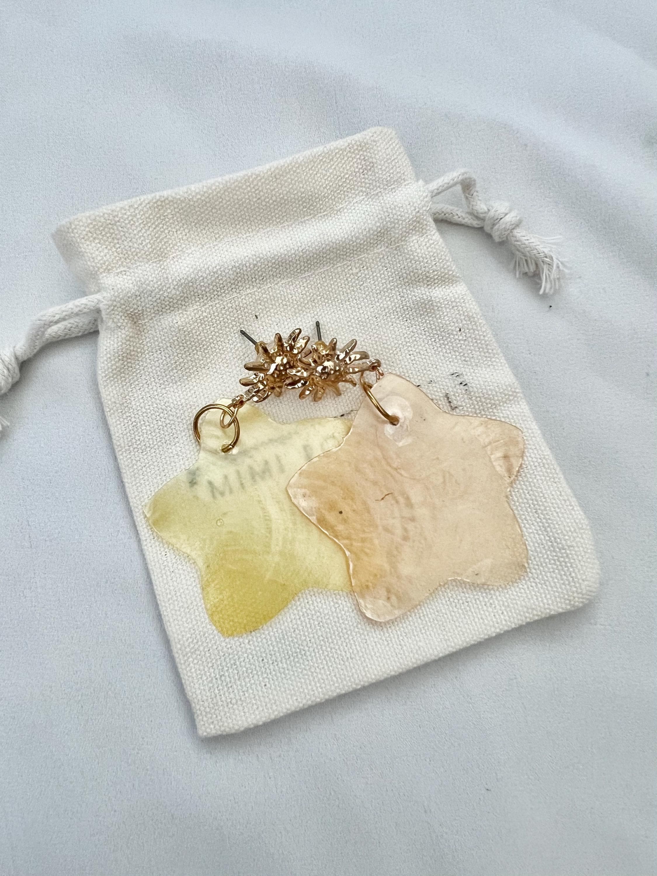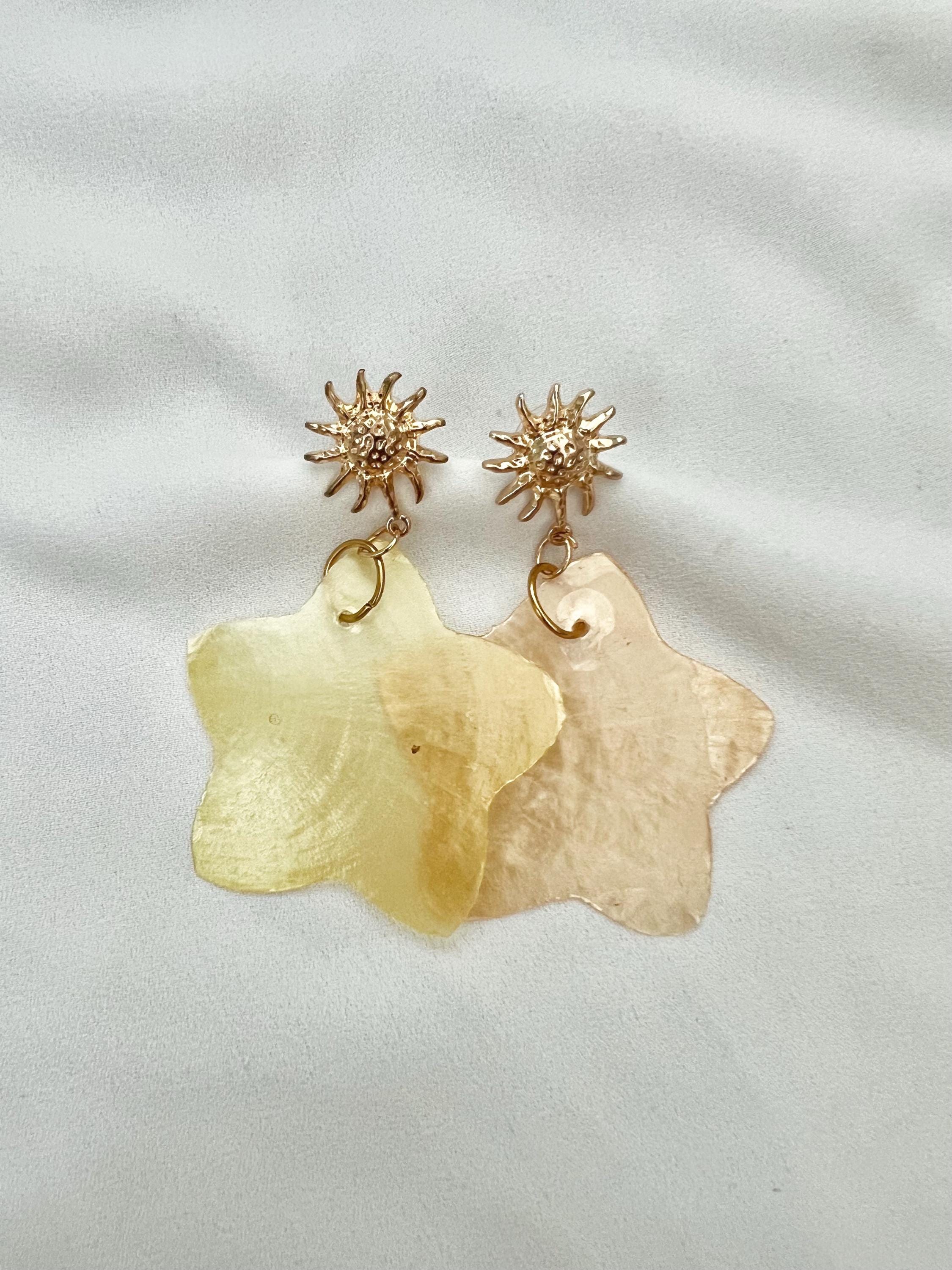 Yellow shell star sunflower stud drop gold earrings