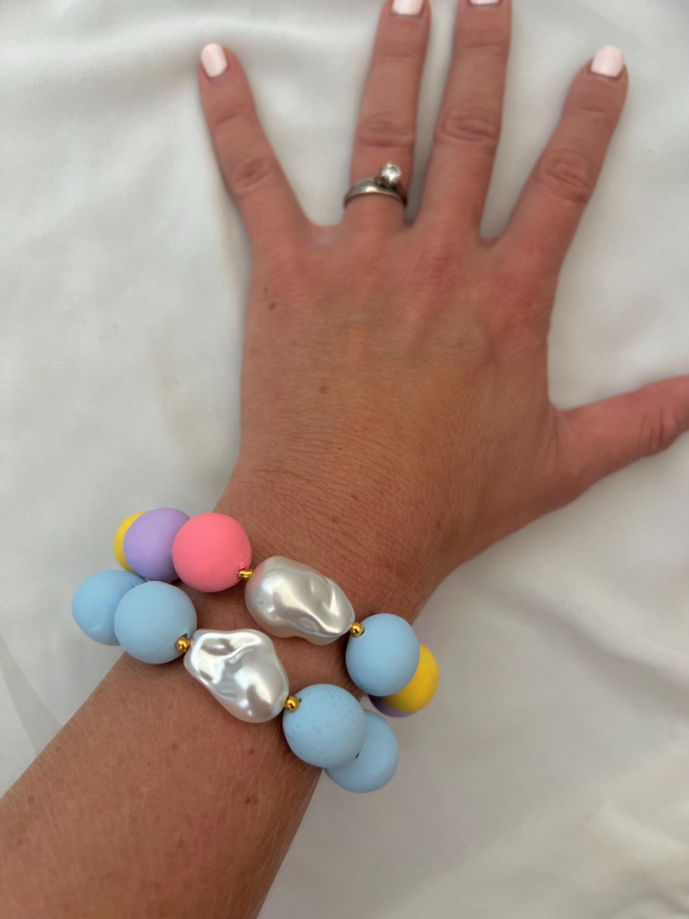 Bubblegum pastell large handmade bead Baroque pearl bracelet