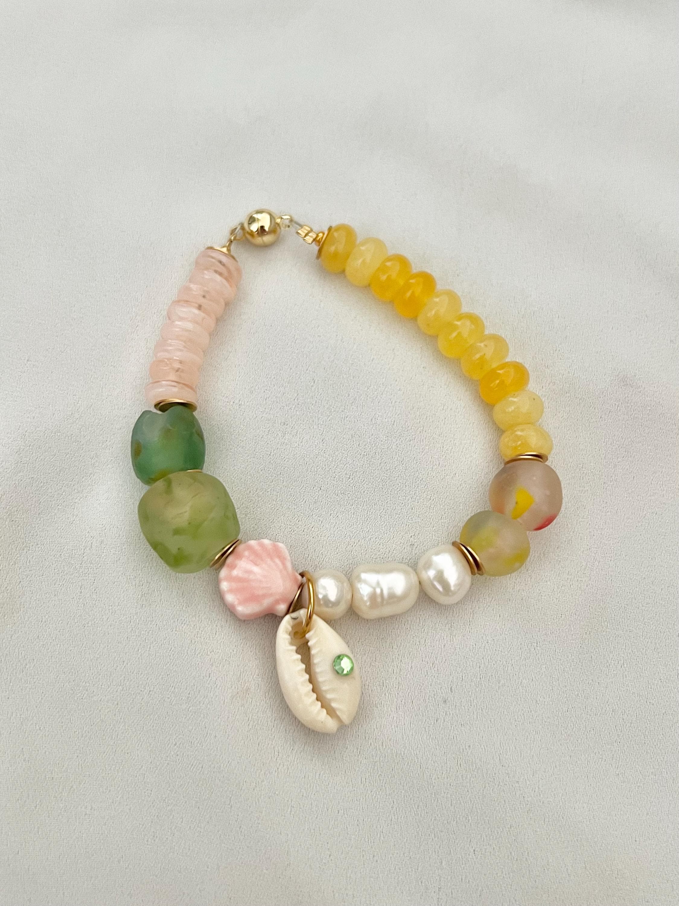 Pearl shell glass bead magnetic gold lock bracelet