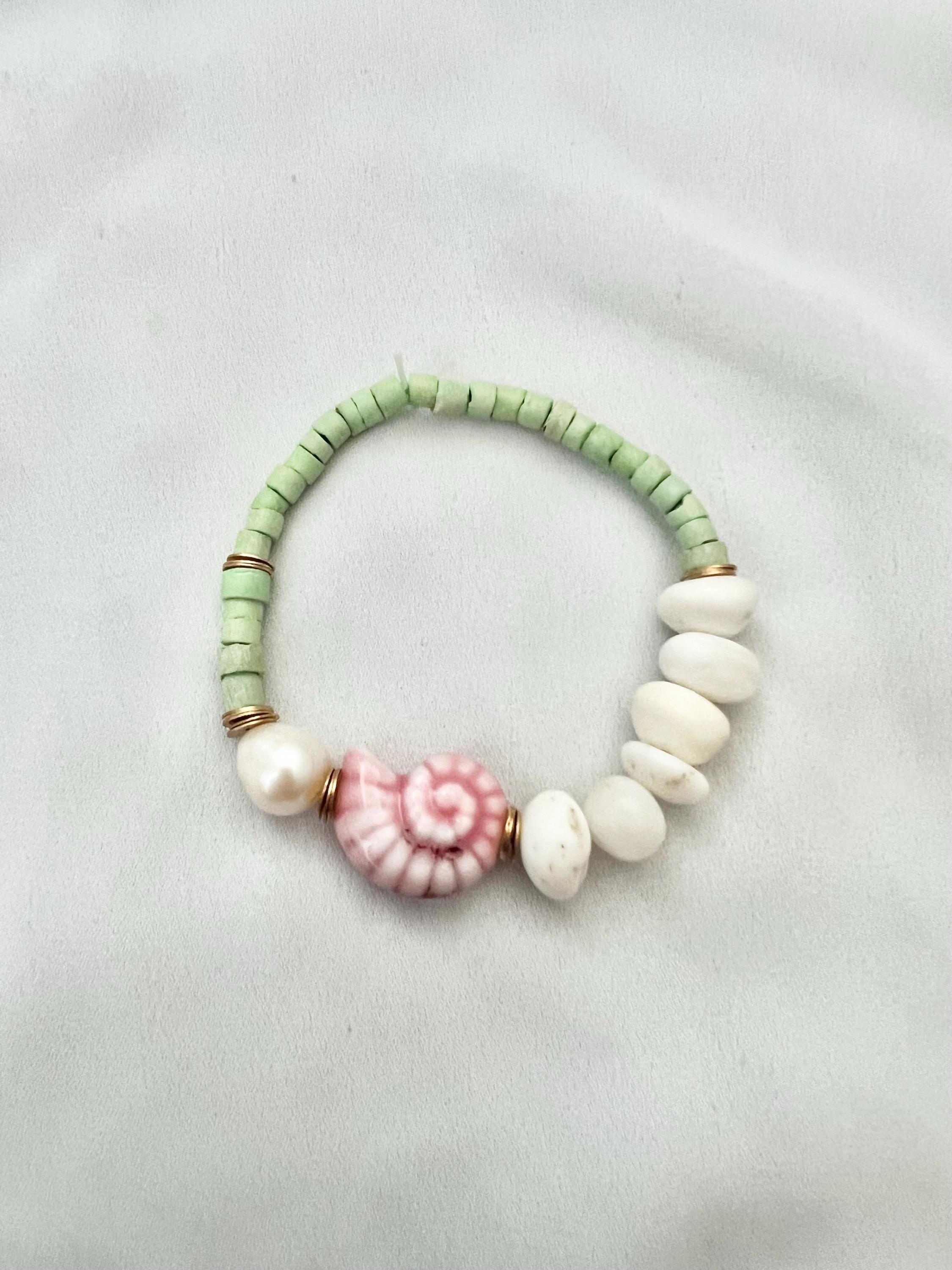 Sea foam green beaded pearl pink shell stone bracelet