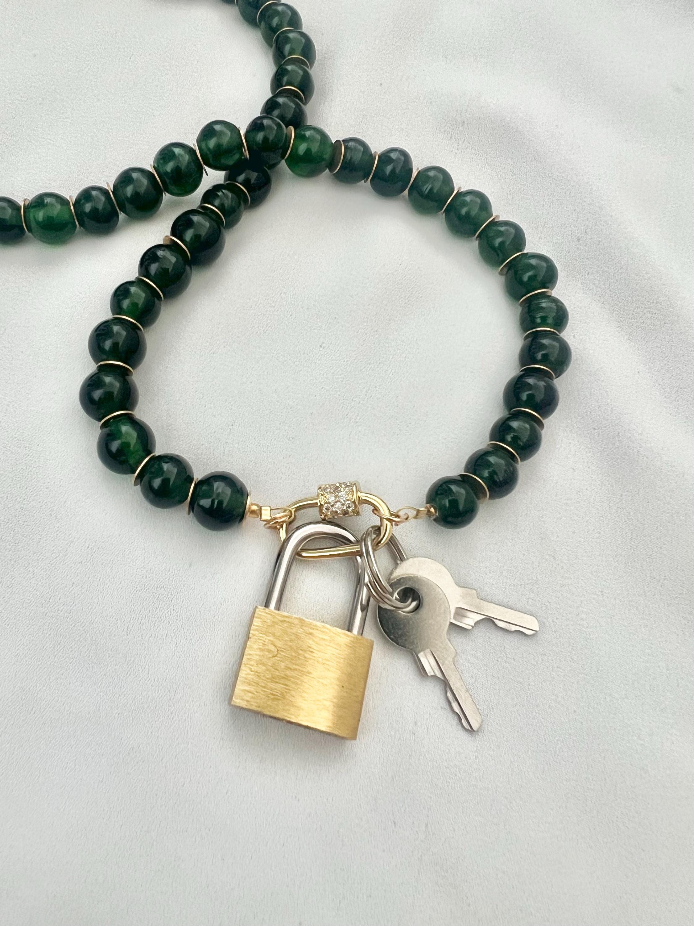 * Carabiner lock: 18 k gold plated brass and Cubic Zirconia stones