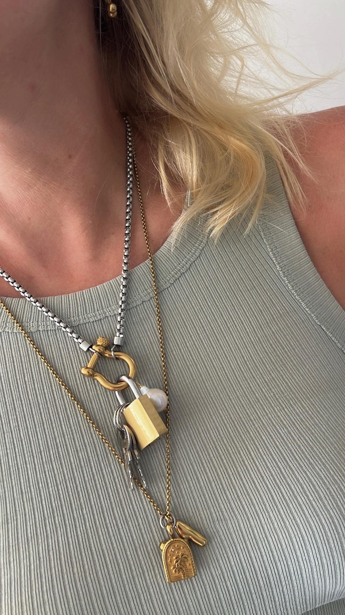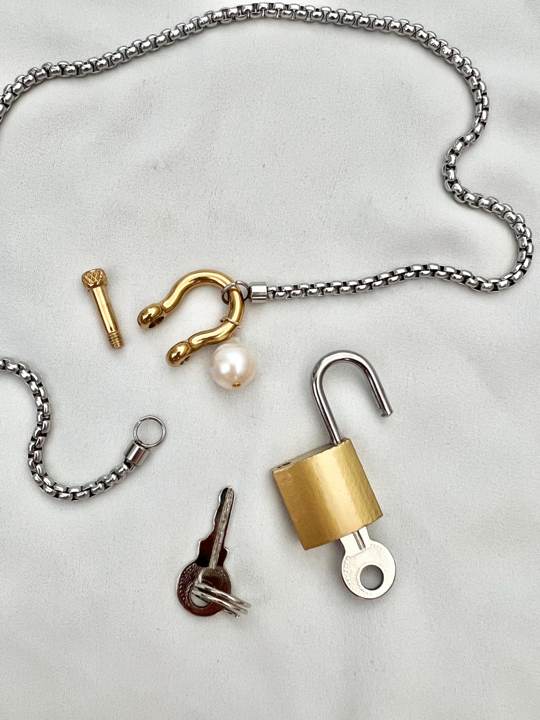 Key and lock horseshoe lock gold silver stainless steel necklace