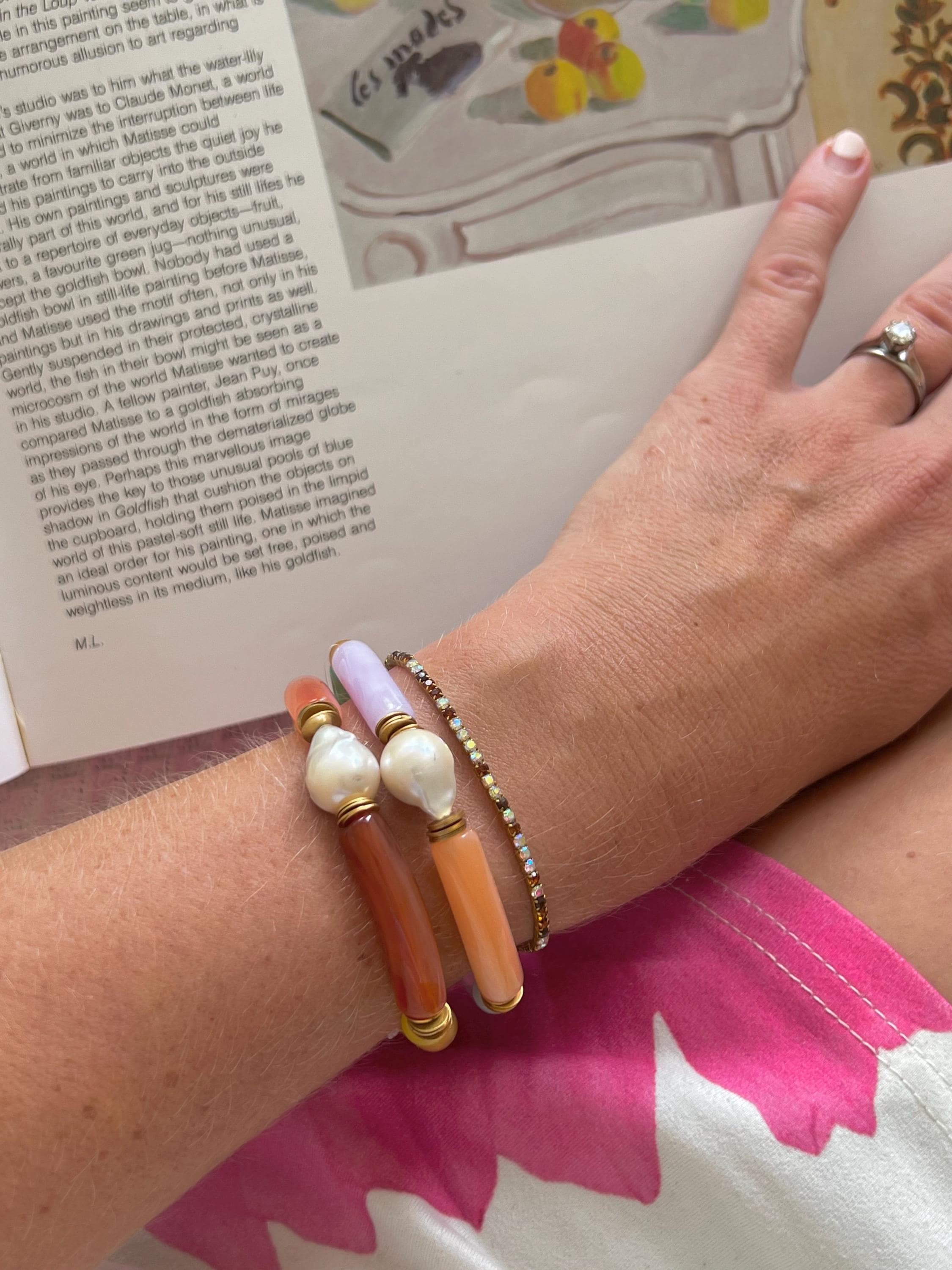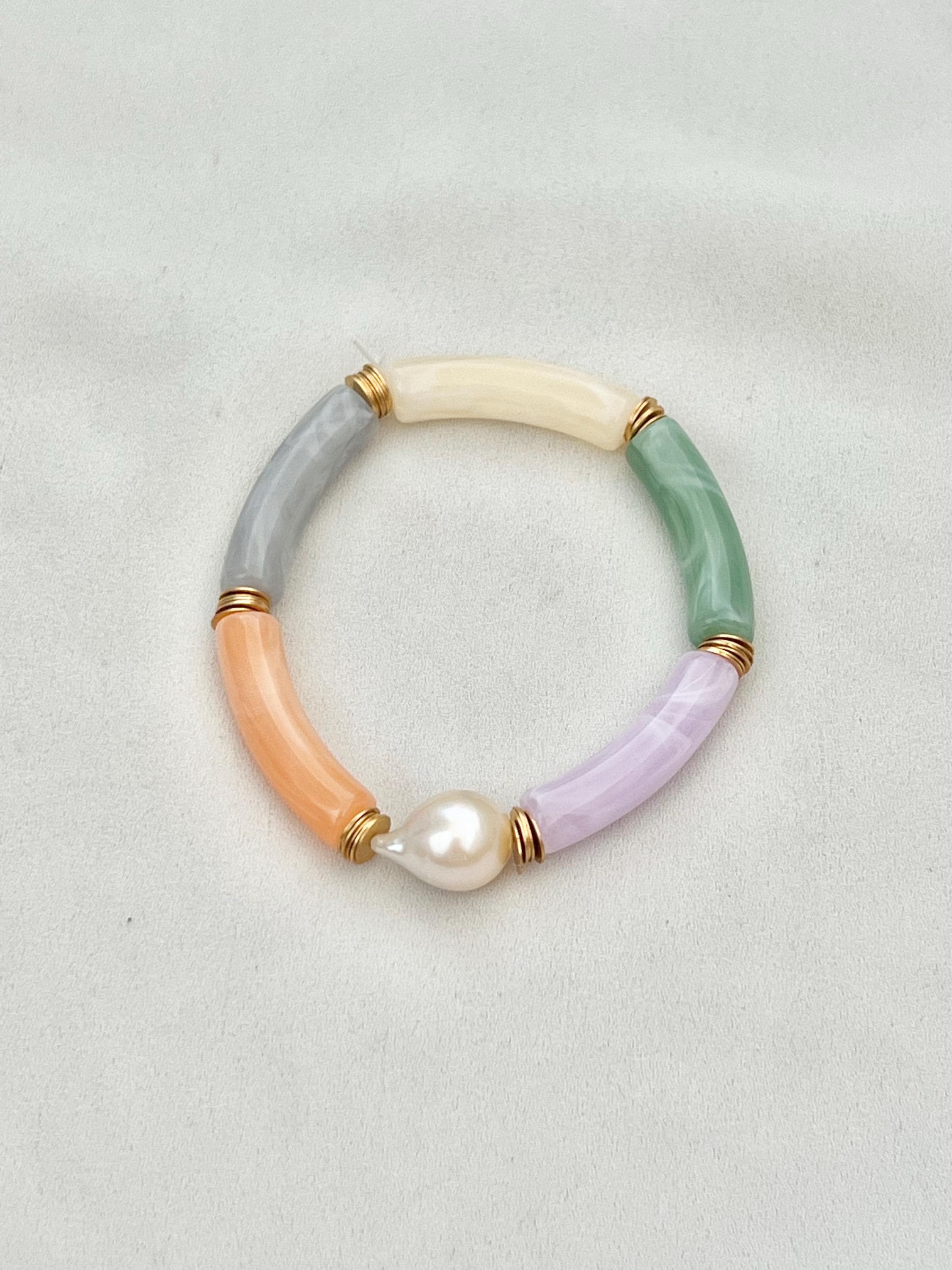 Baroque freshwater pearl Acrylic curved pastel tube bead bracelet