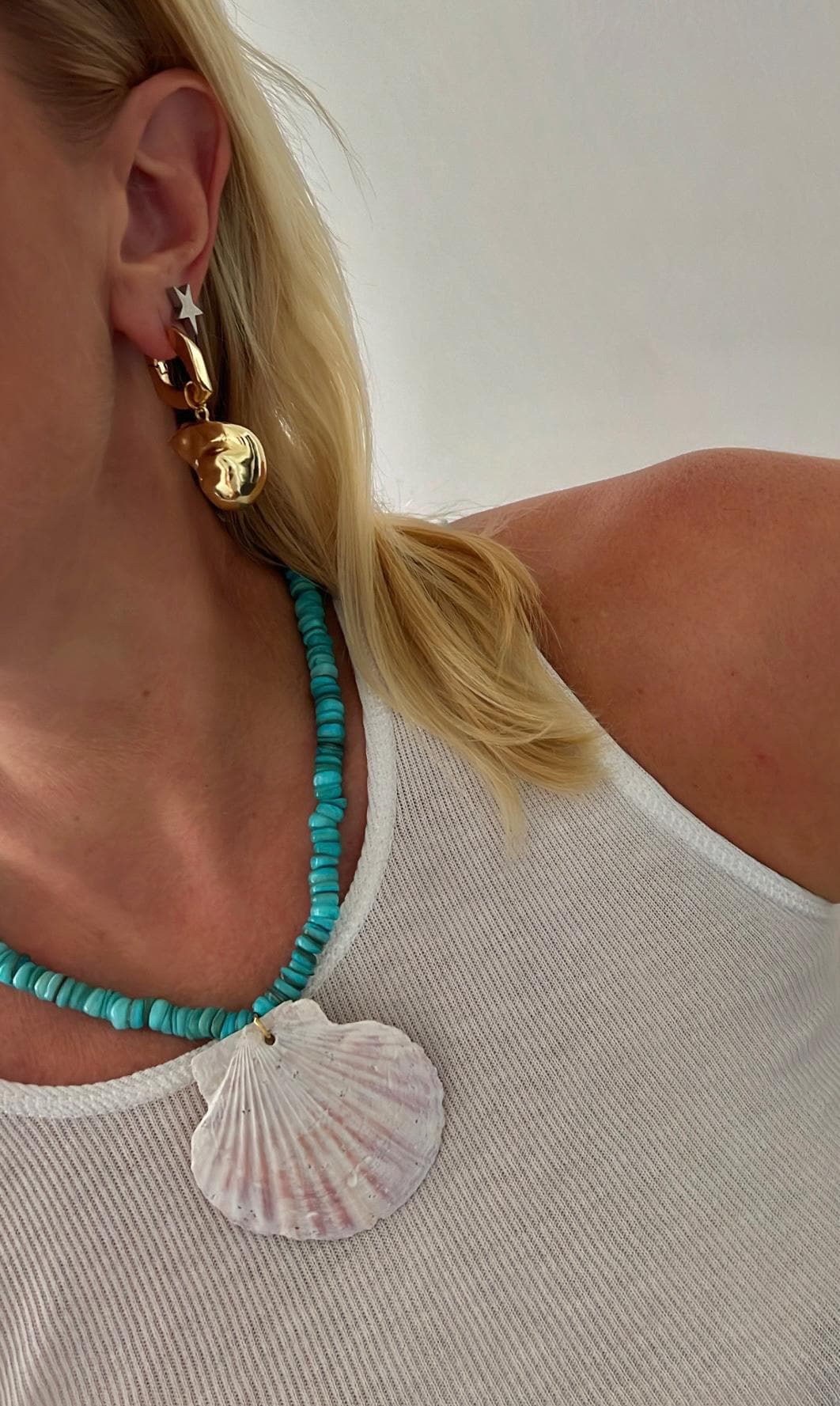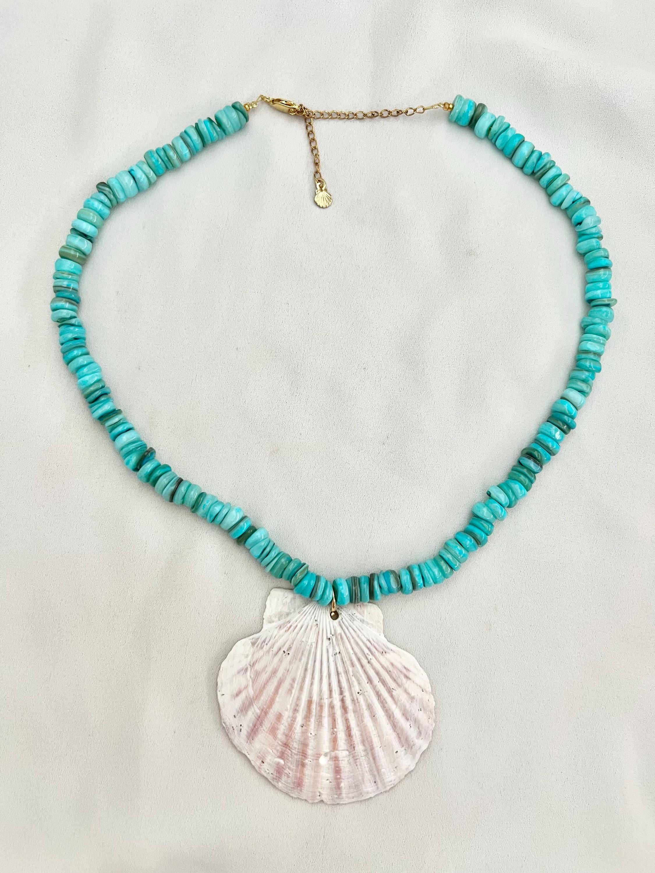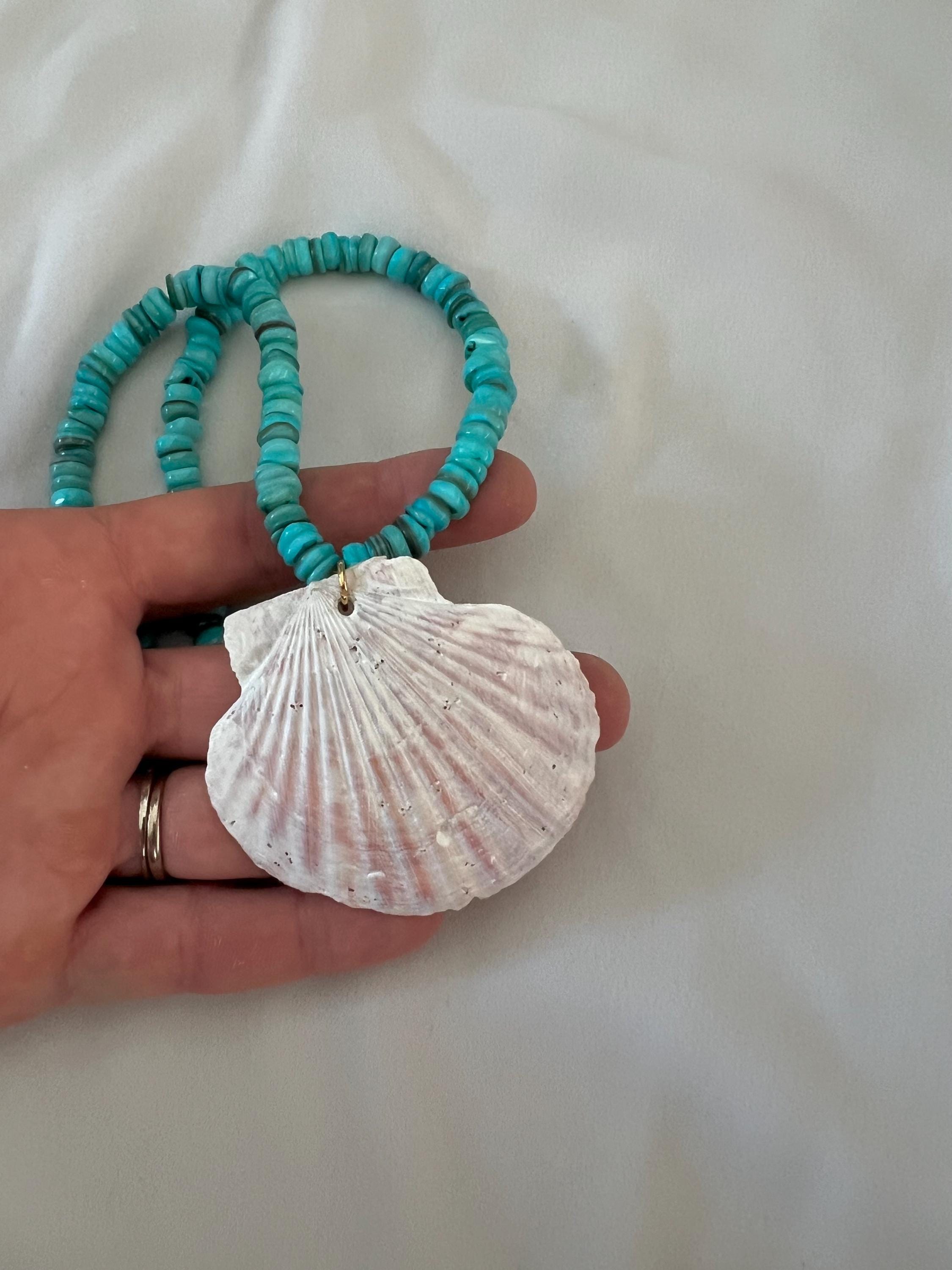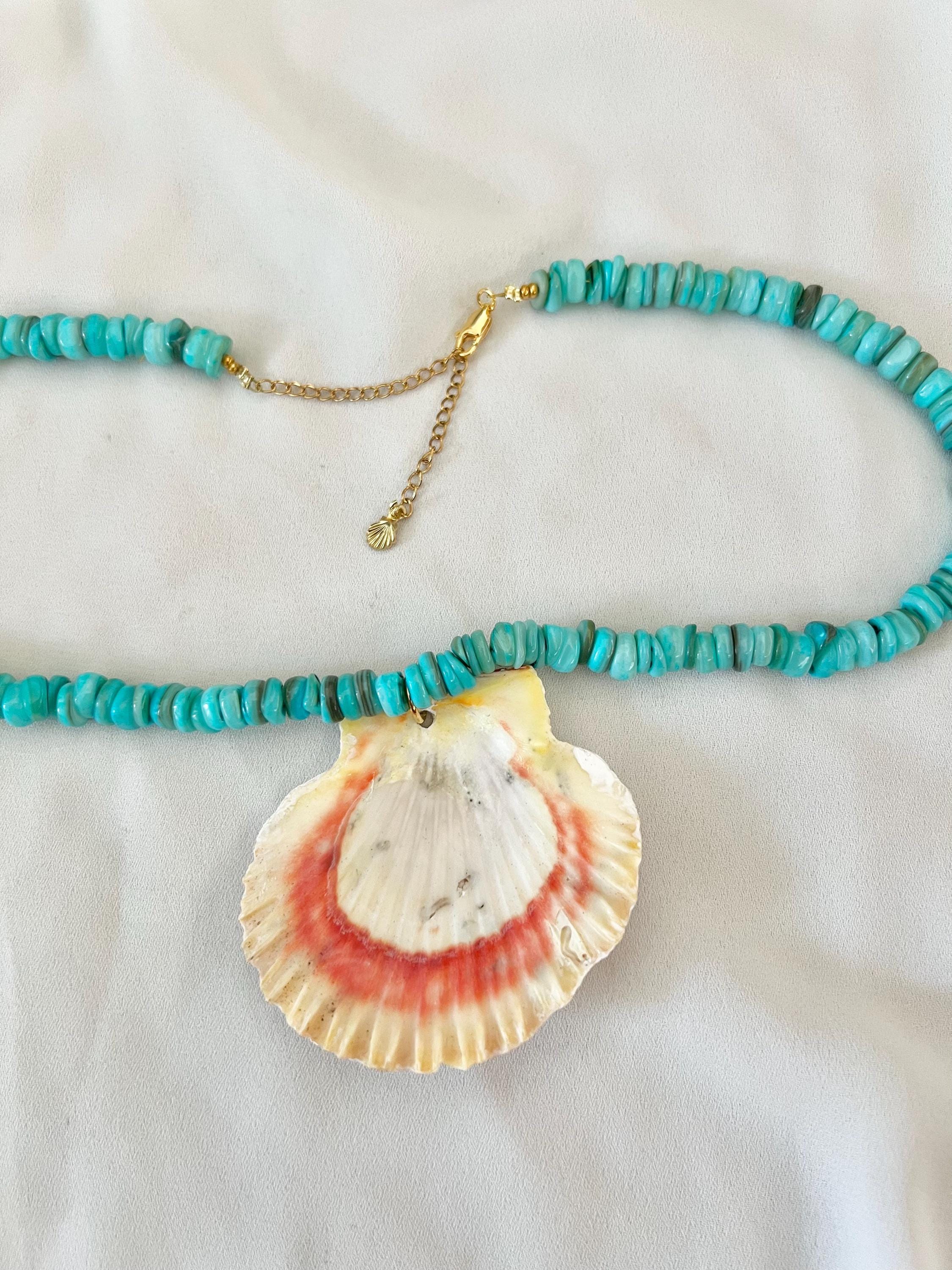 Celestial sun pendant shell turquoise Freshwater shell bead necklace