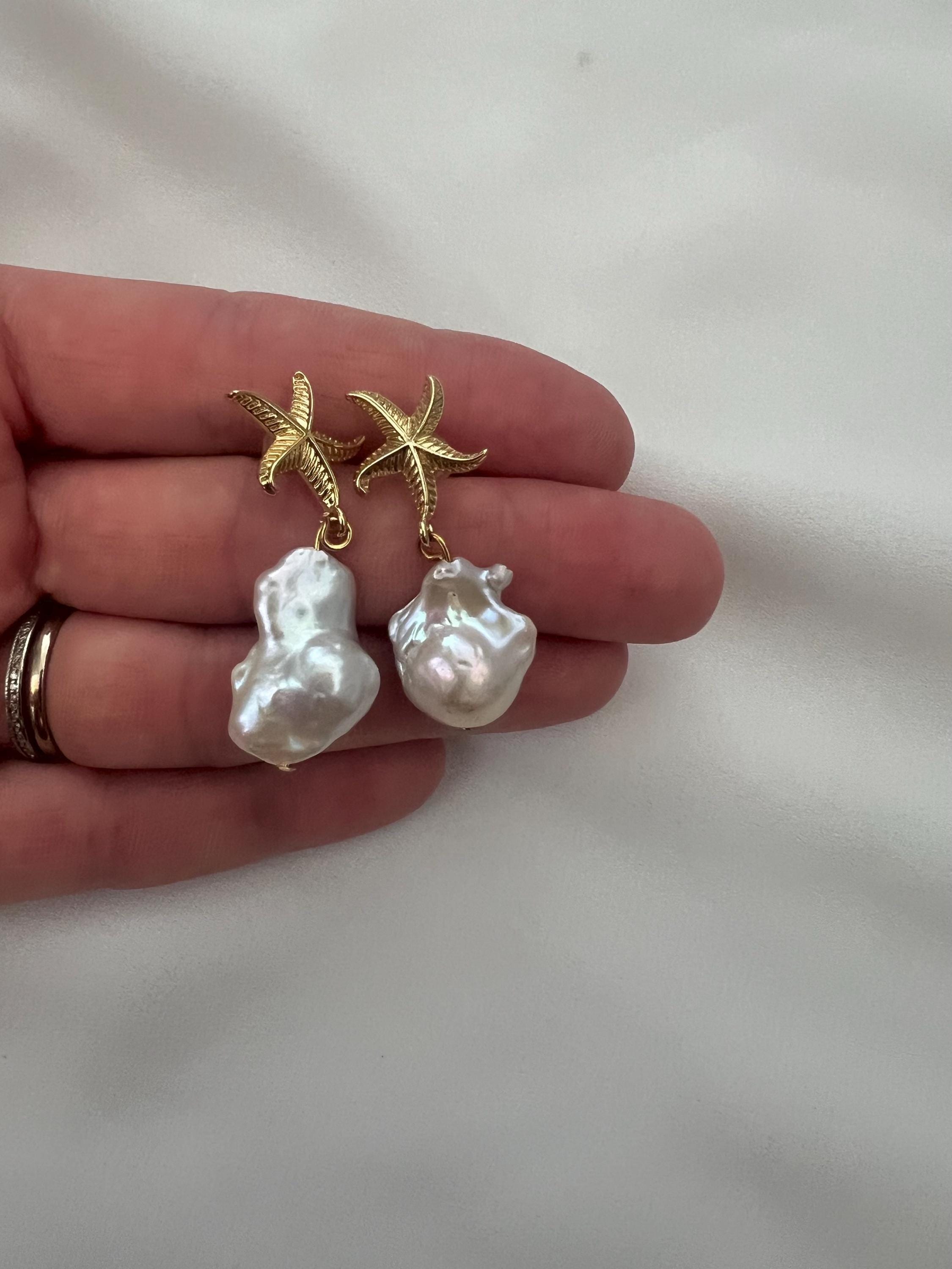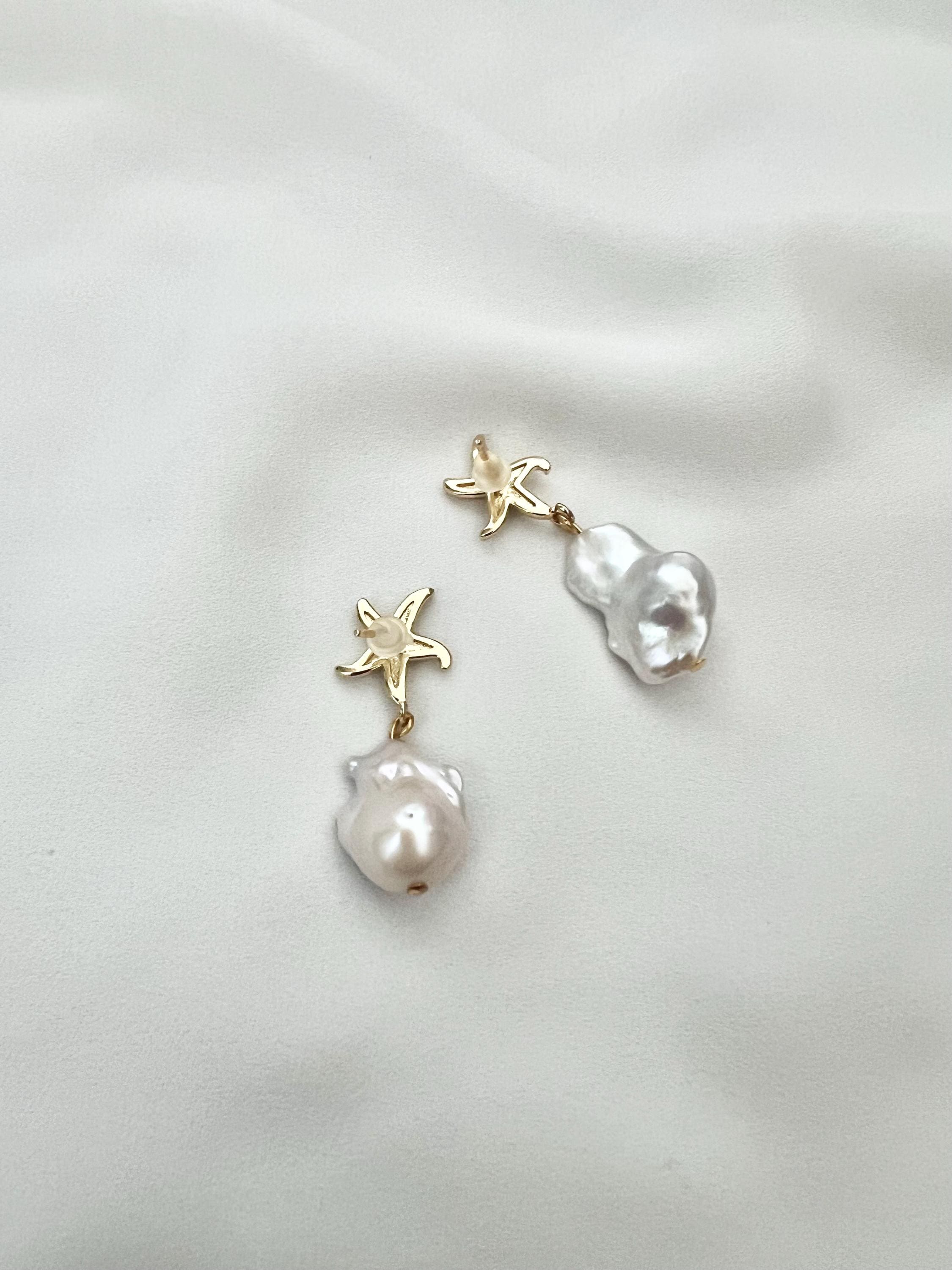 Baroque pearl starfish stud dangle drop earrings