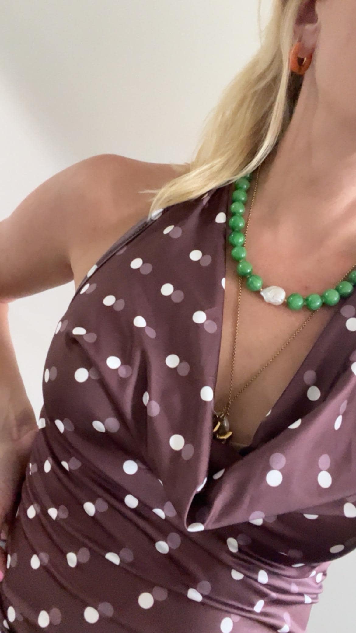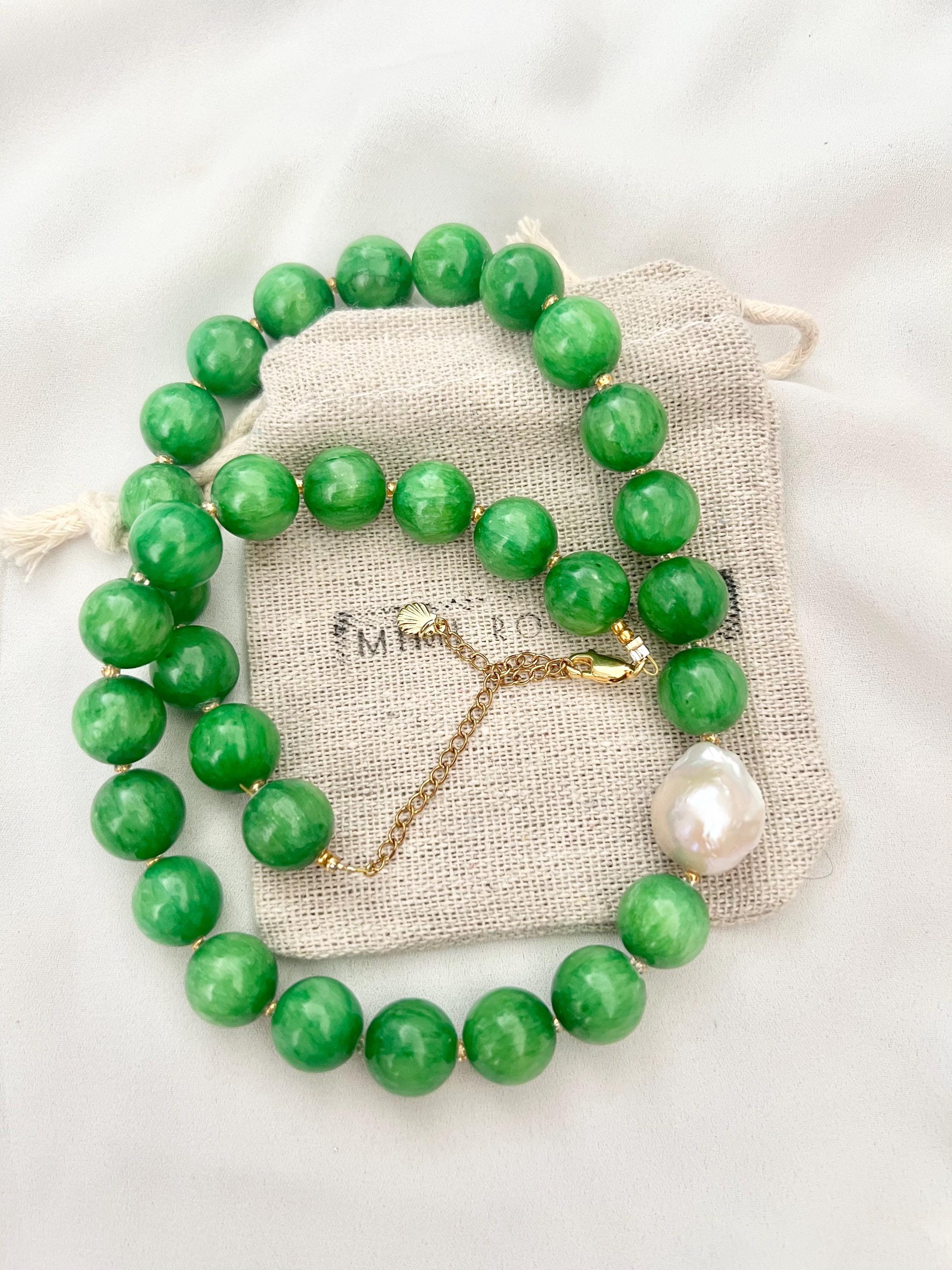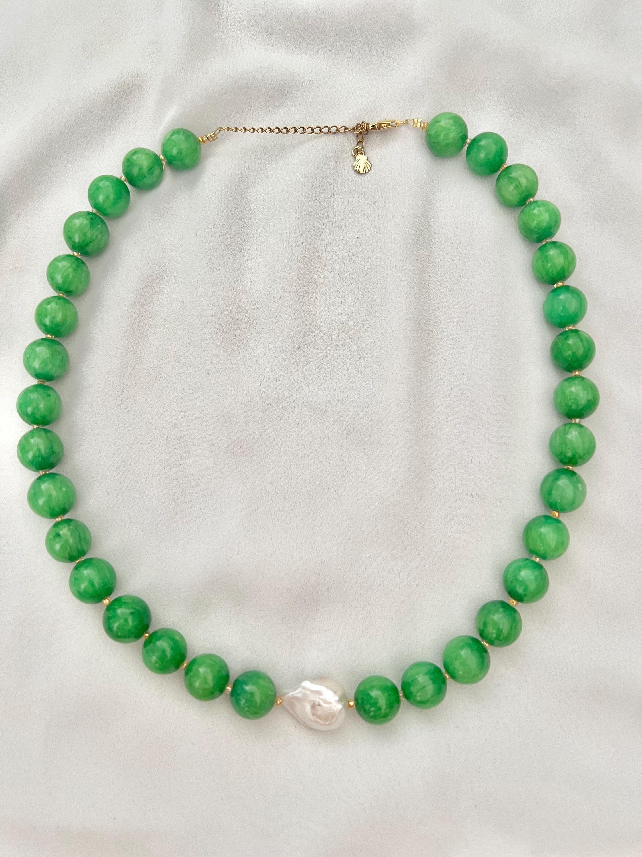 Green Jade stone bead Barque pearl starfish pendant gold necklace
