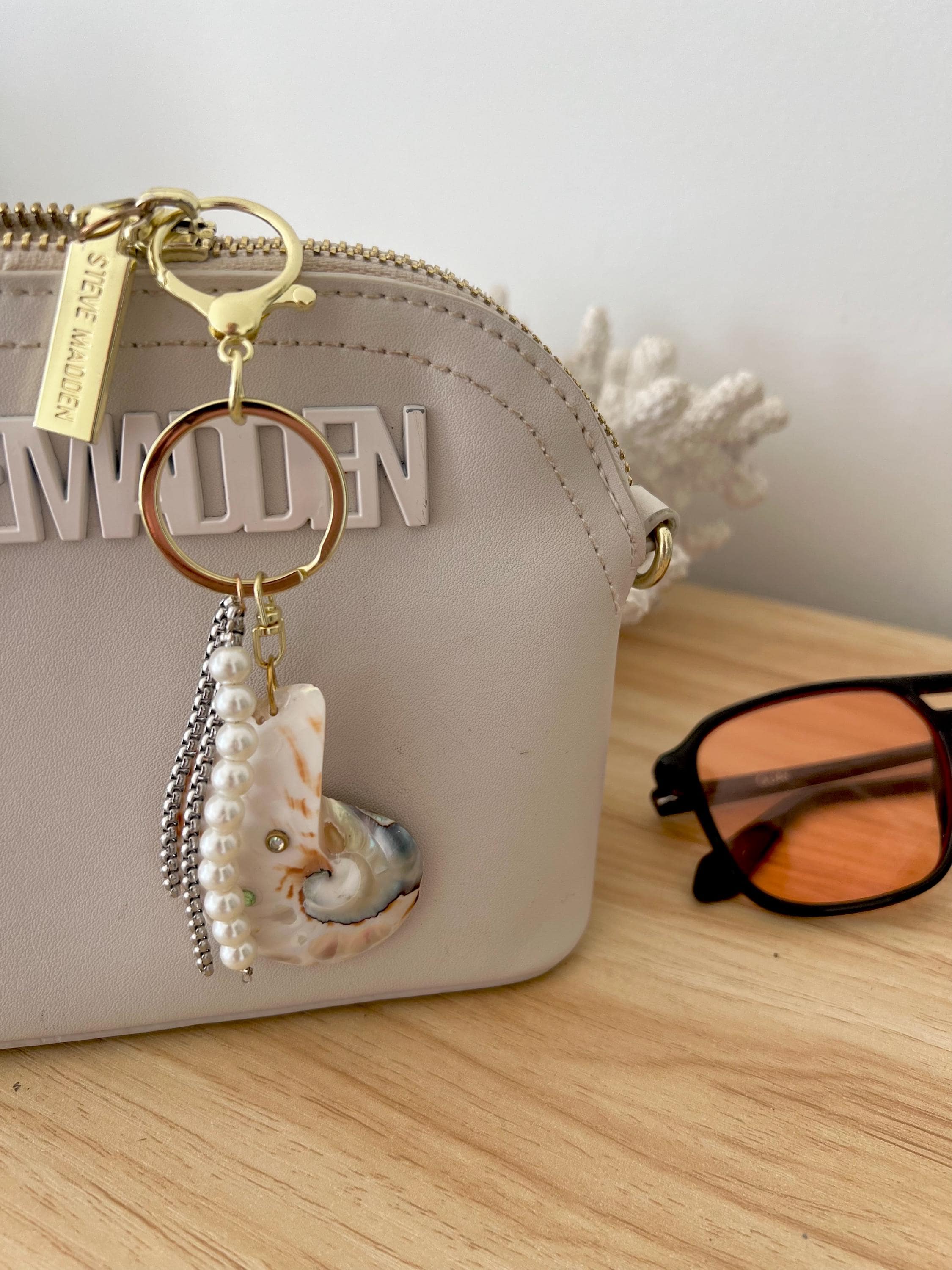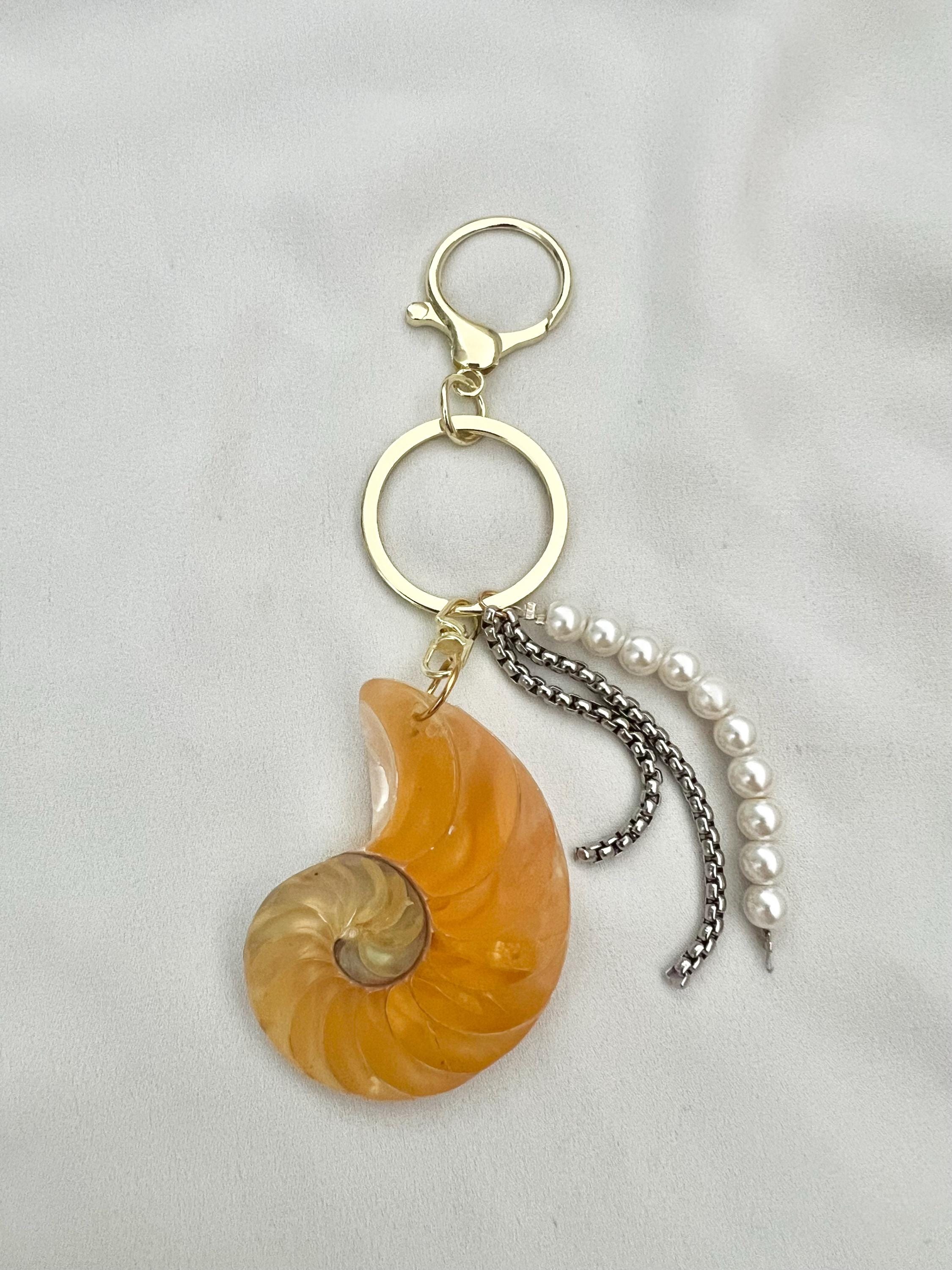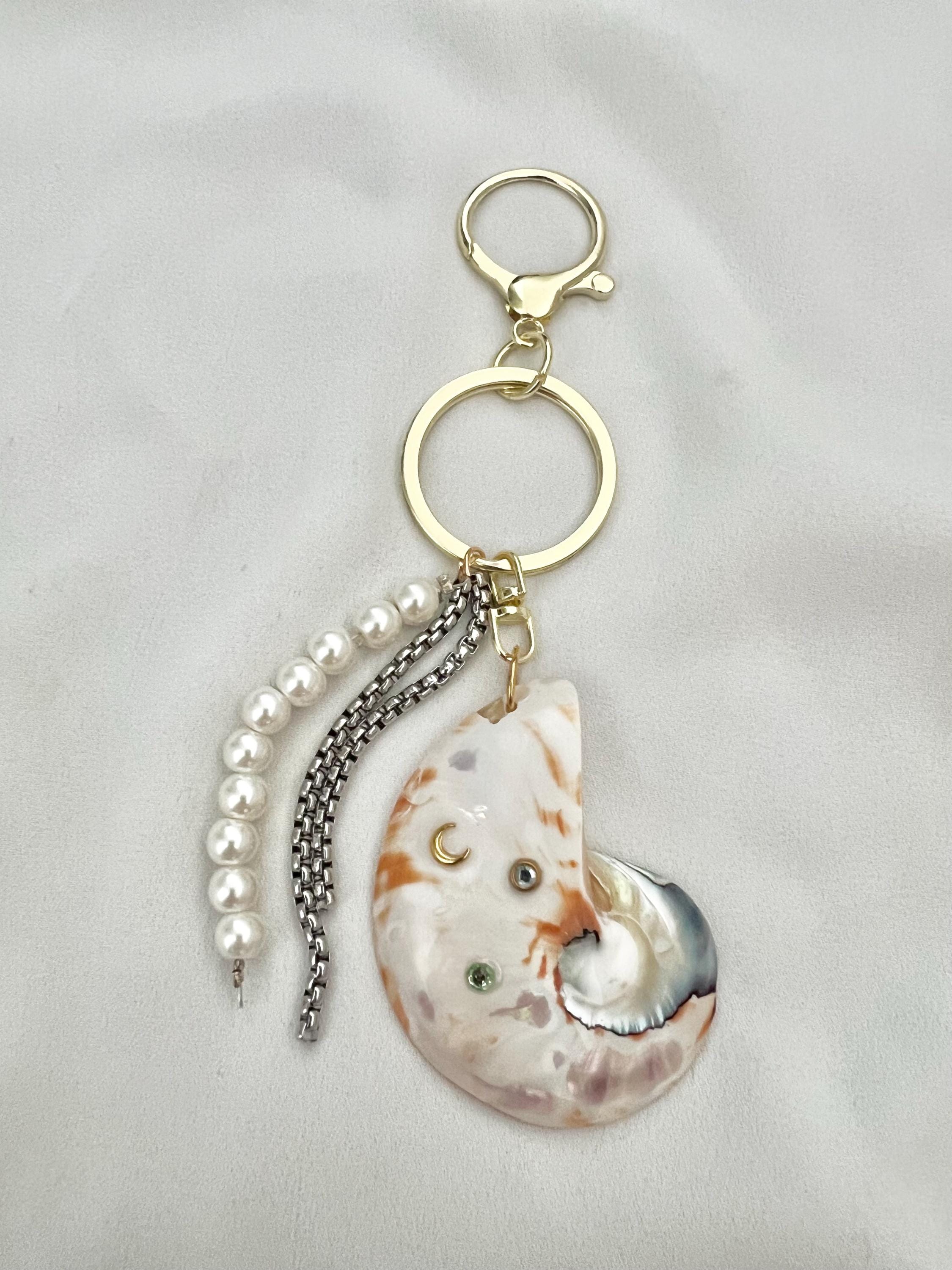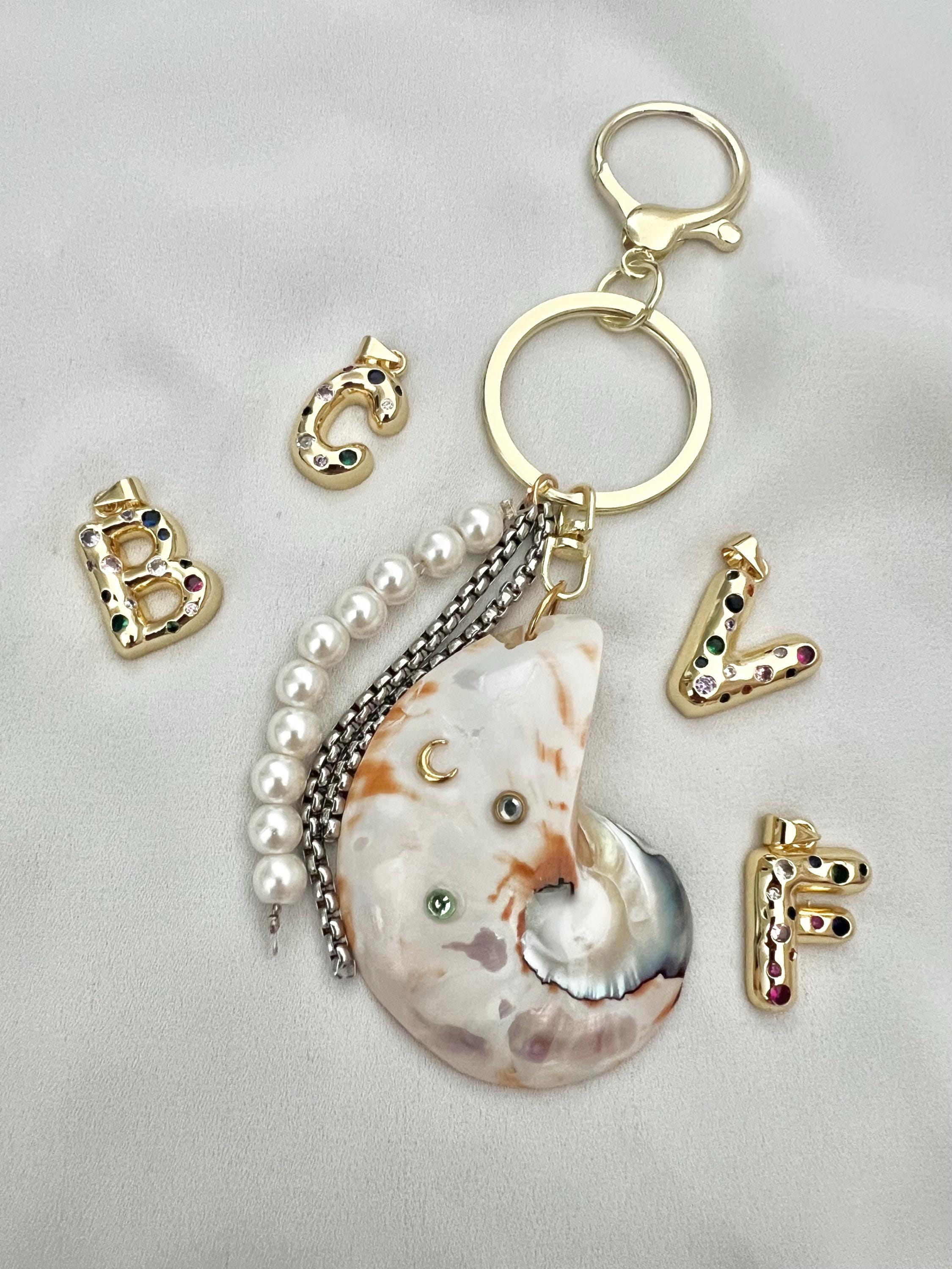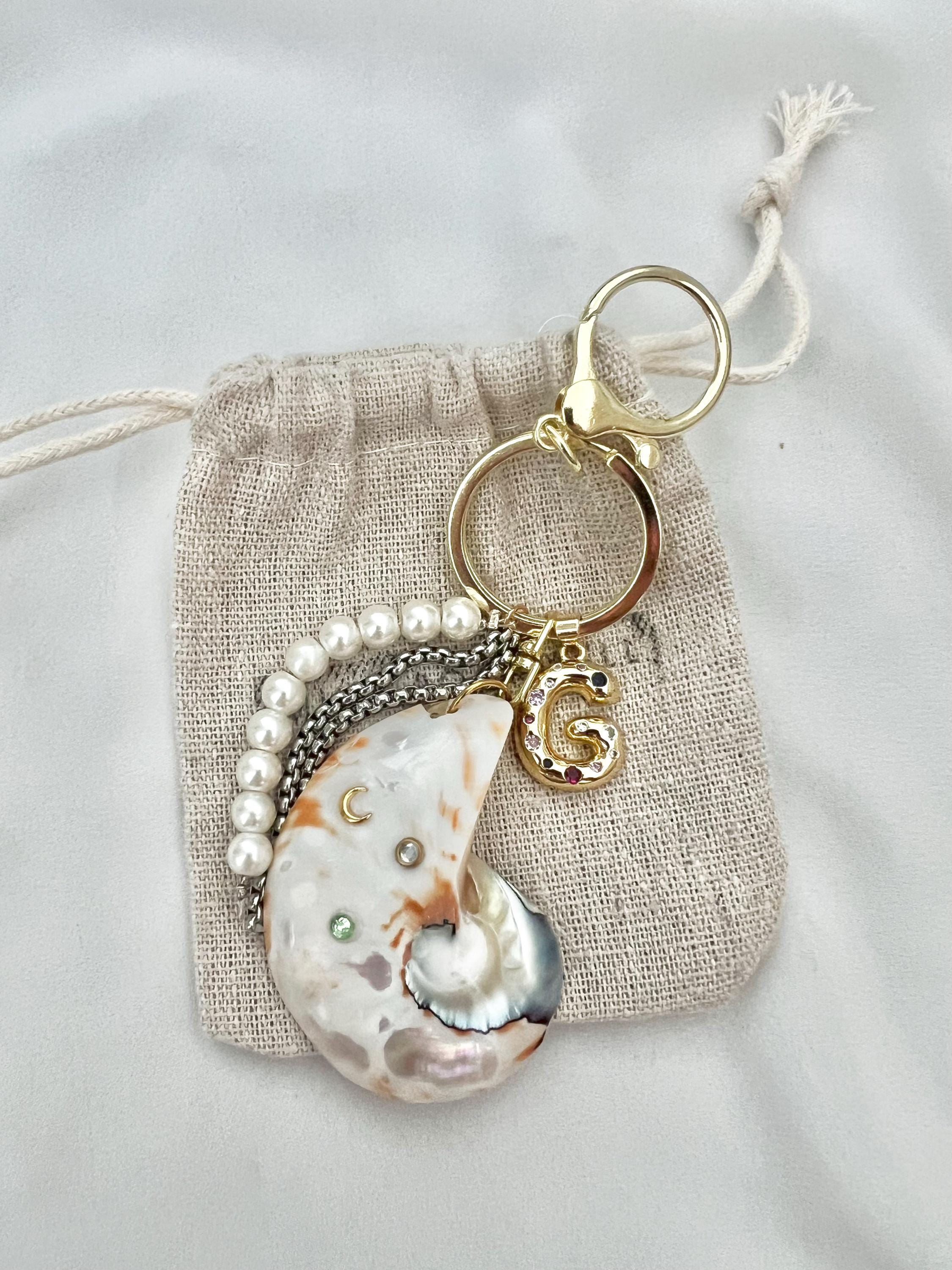 Custom gold letter Nautilus shell key ring bag hang