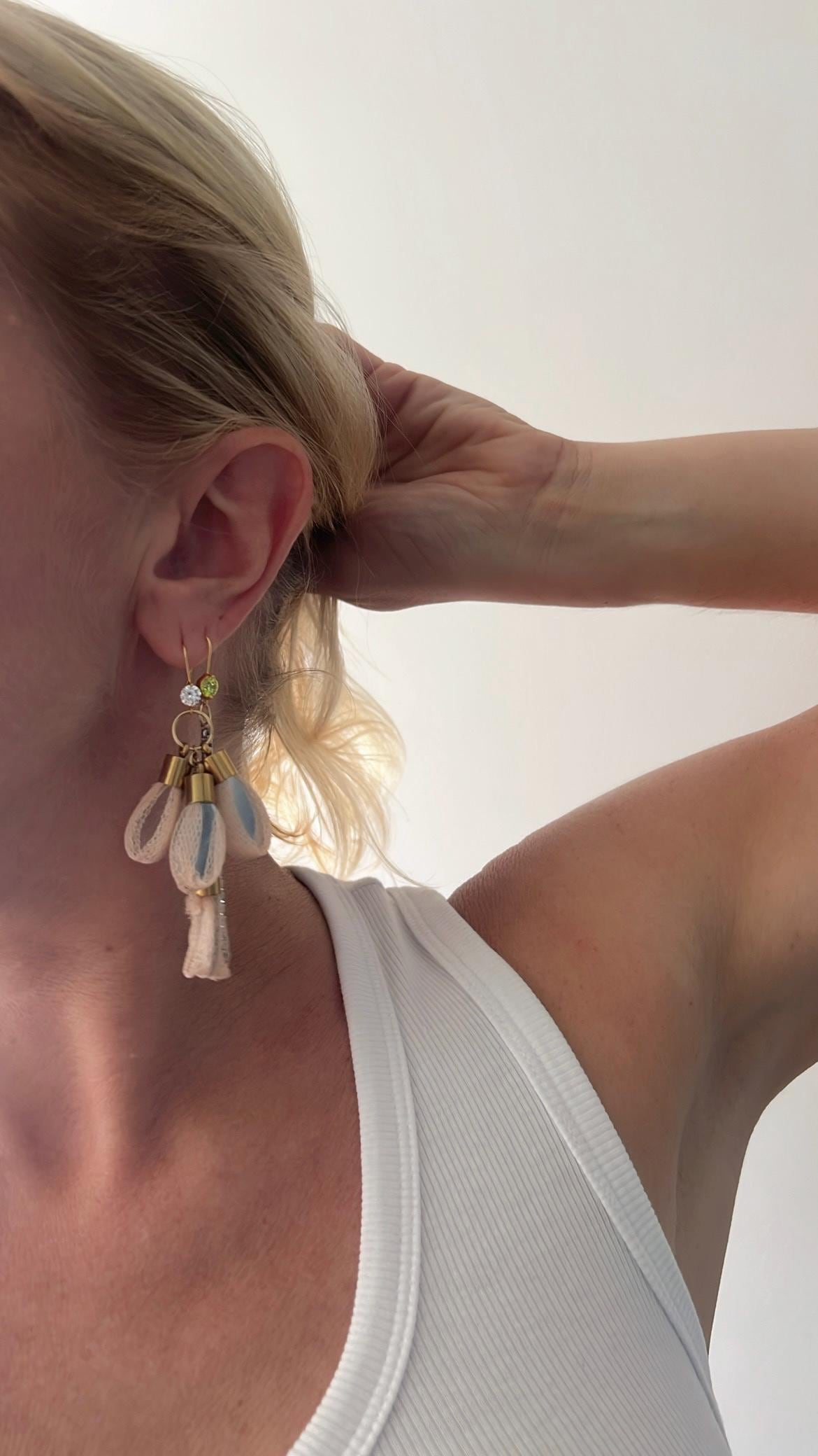 Mirror work tassel zircon dangle drop earrings- Ballet blush