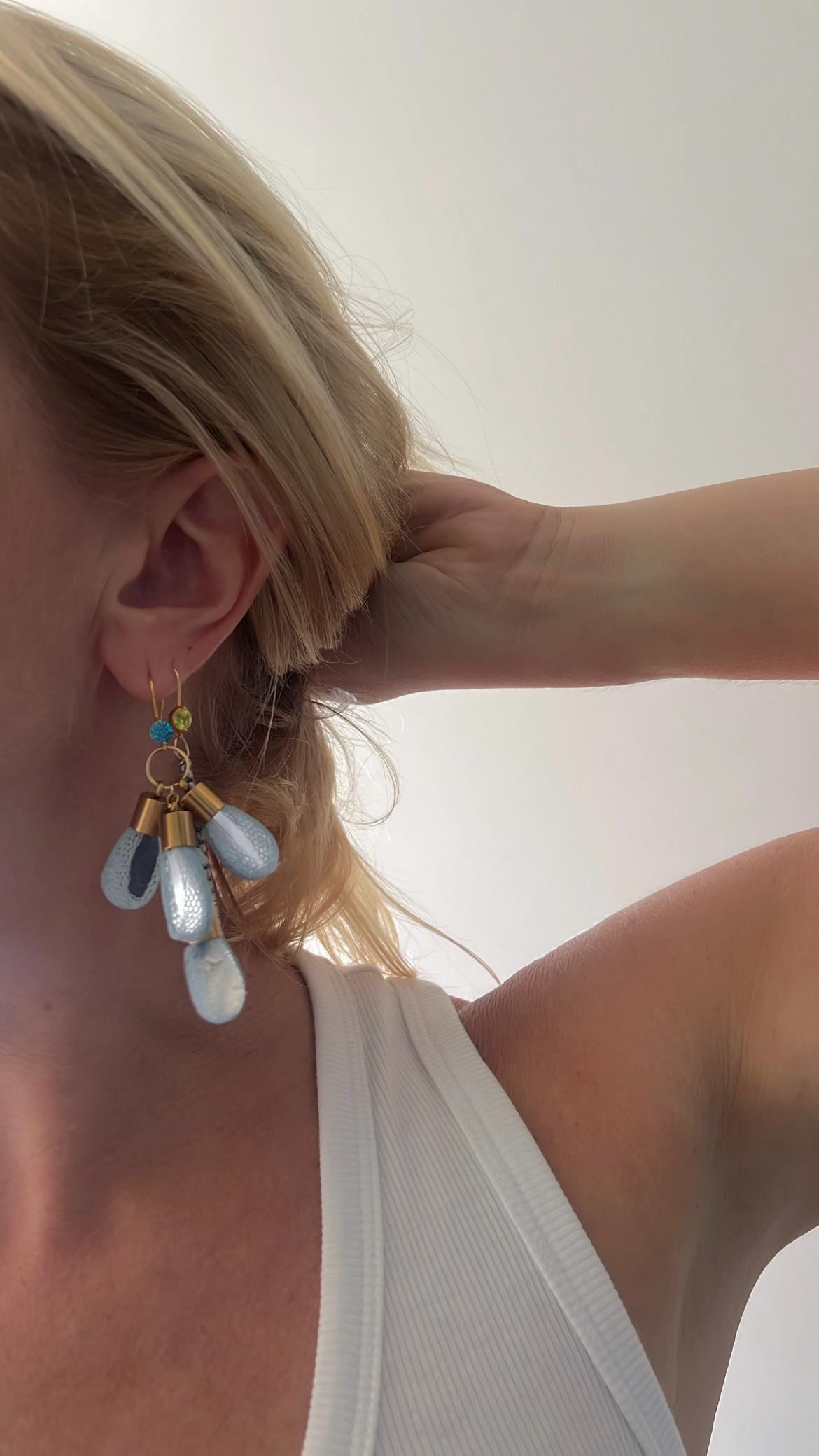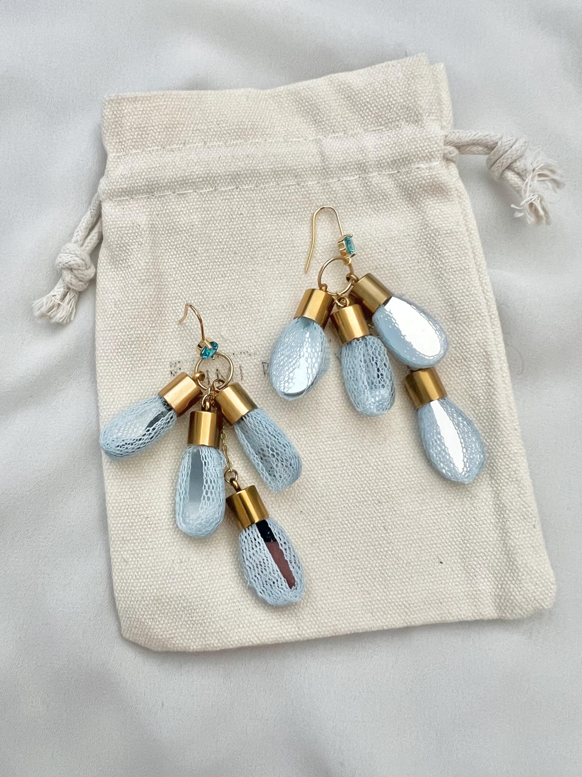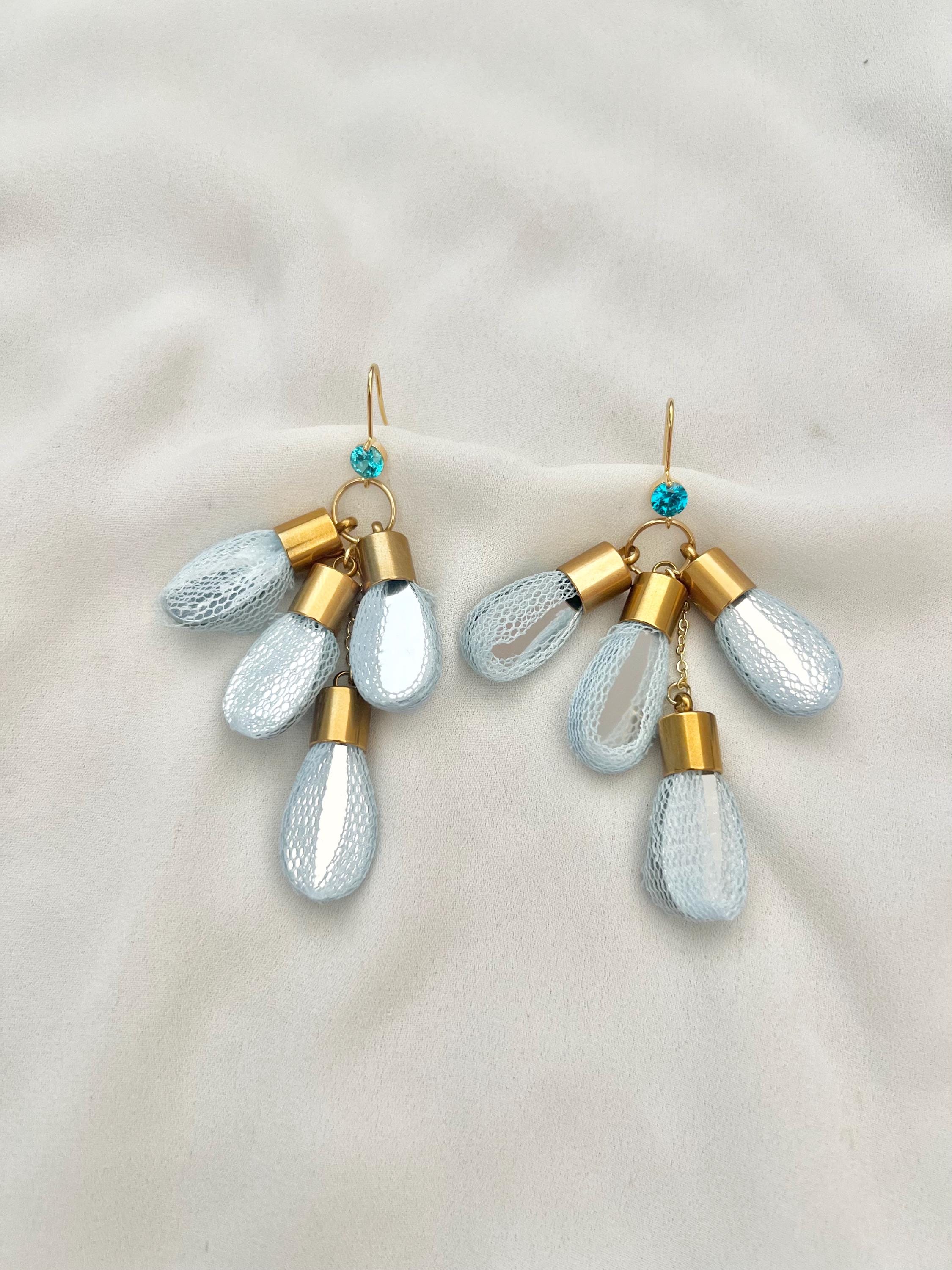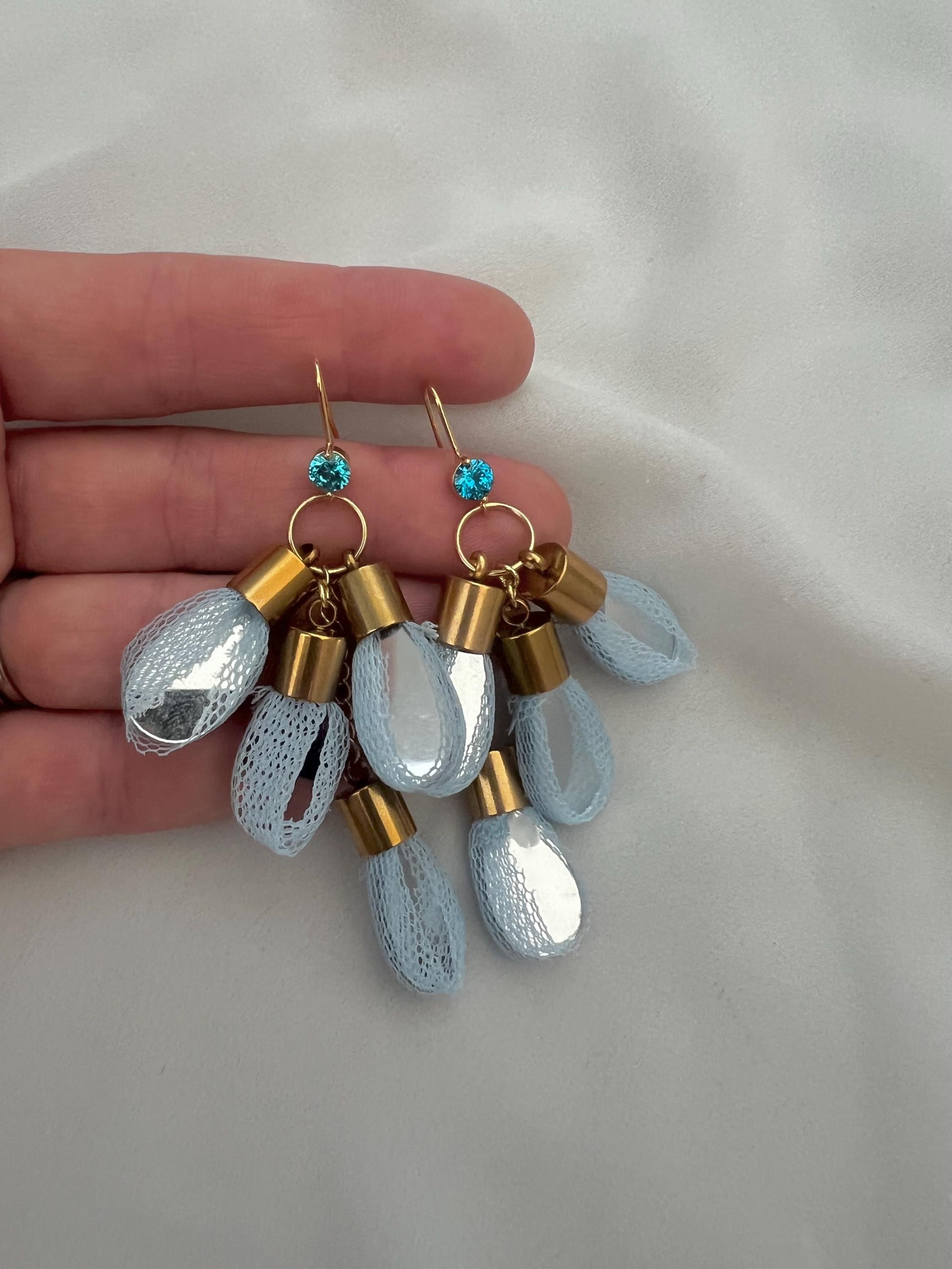 Mirror work tassel zircon dangle drop earrings- Ice blue