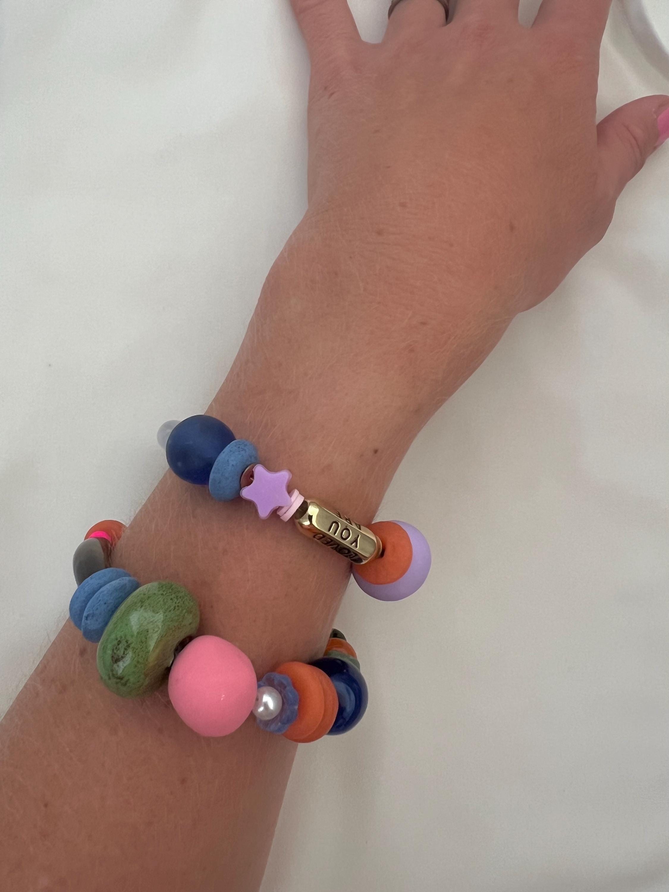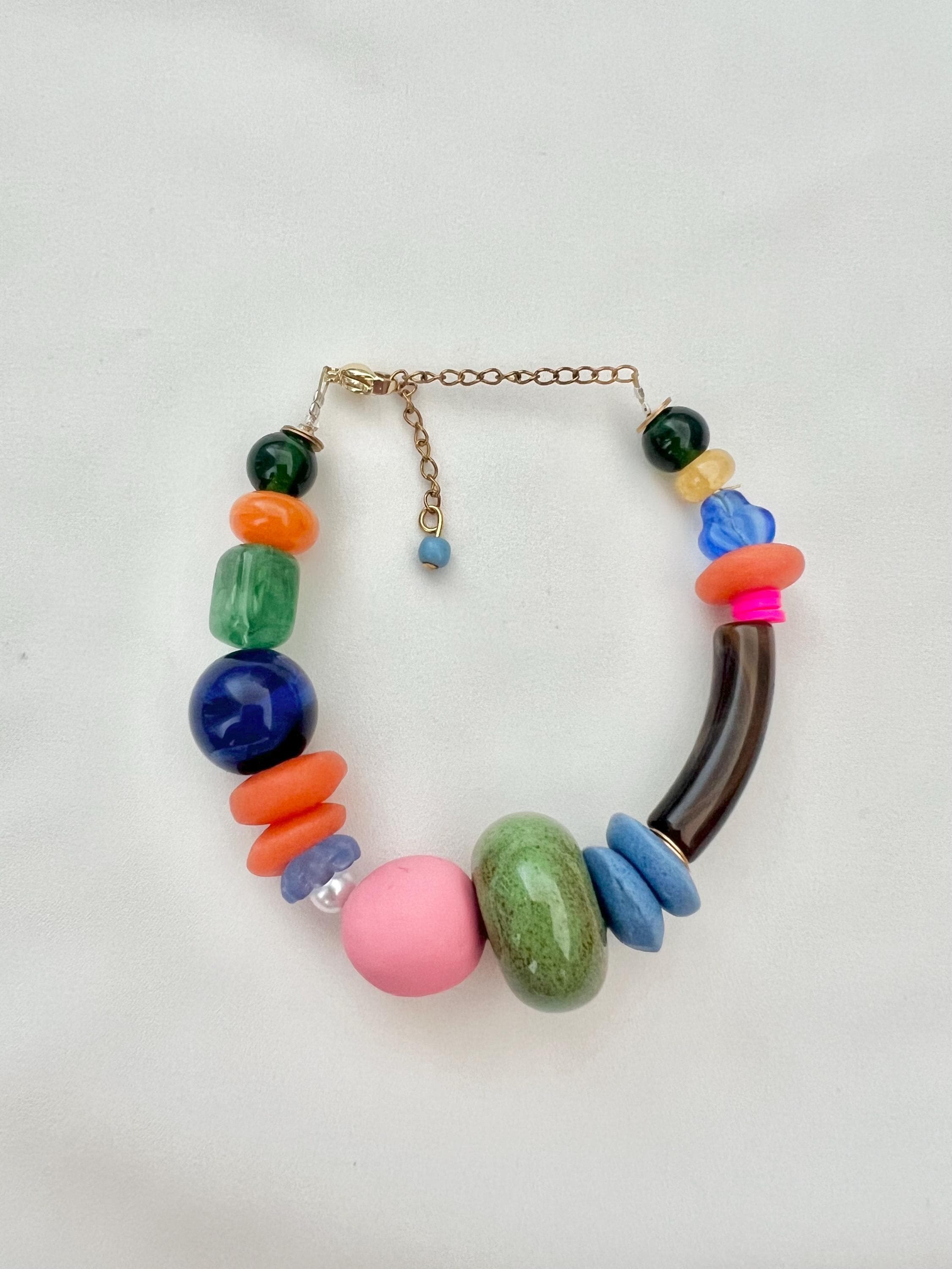 Chunky stone glass ceramic acrylic bead mix gold bracelet