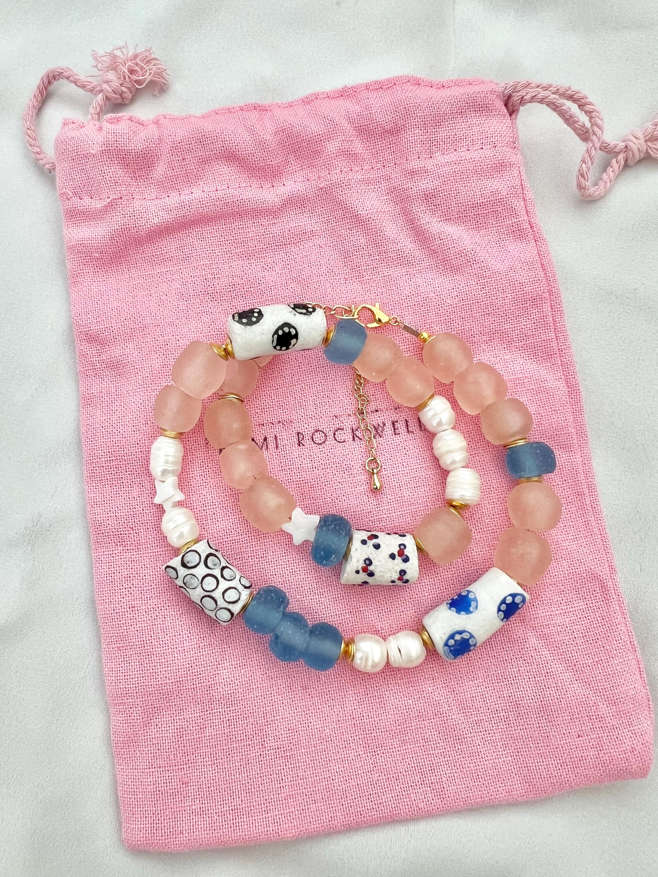 * Recycled glass beads from Ghana, Africa.
