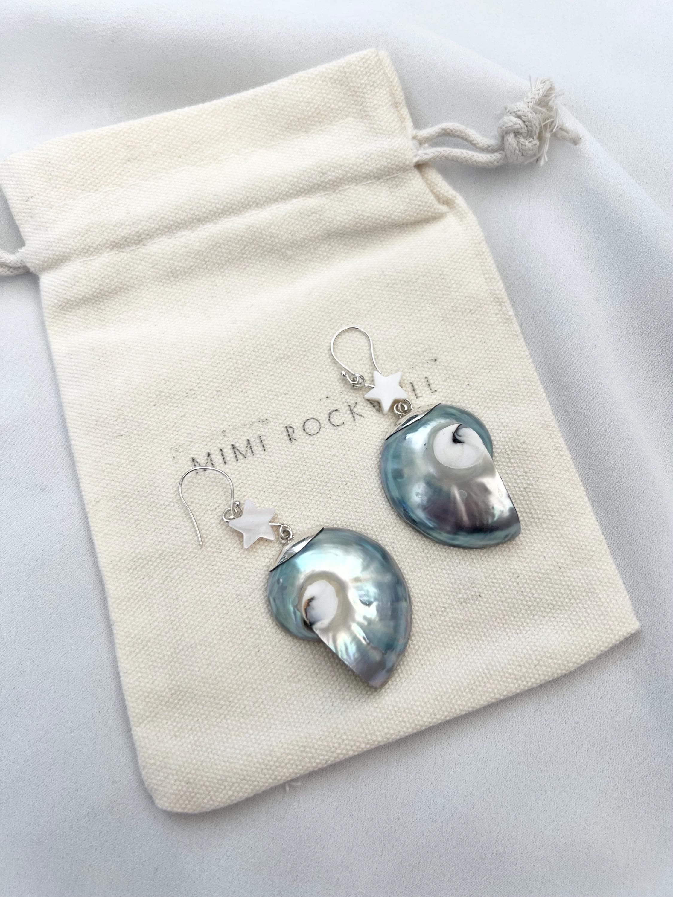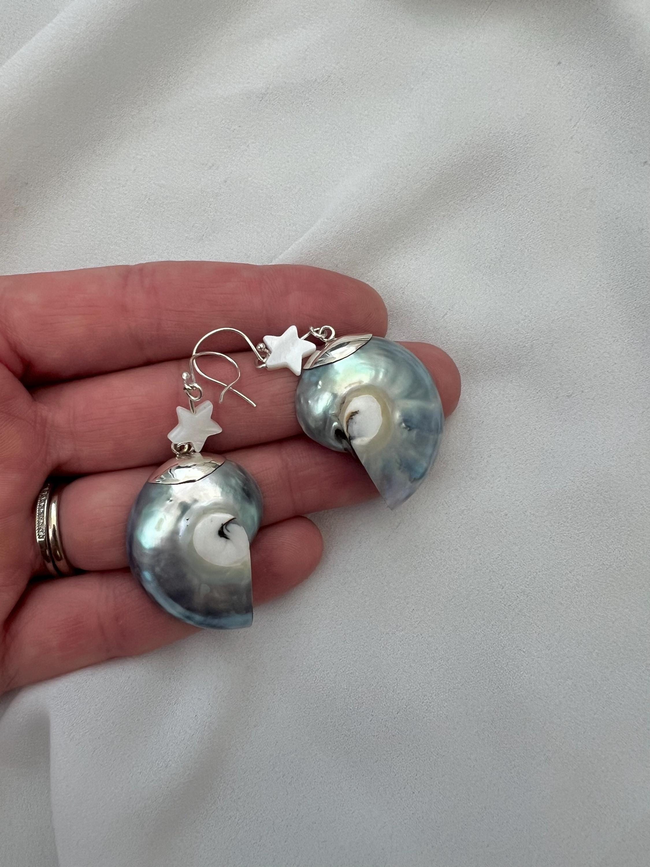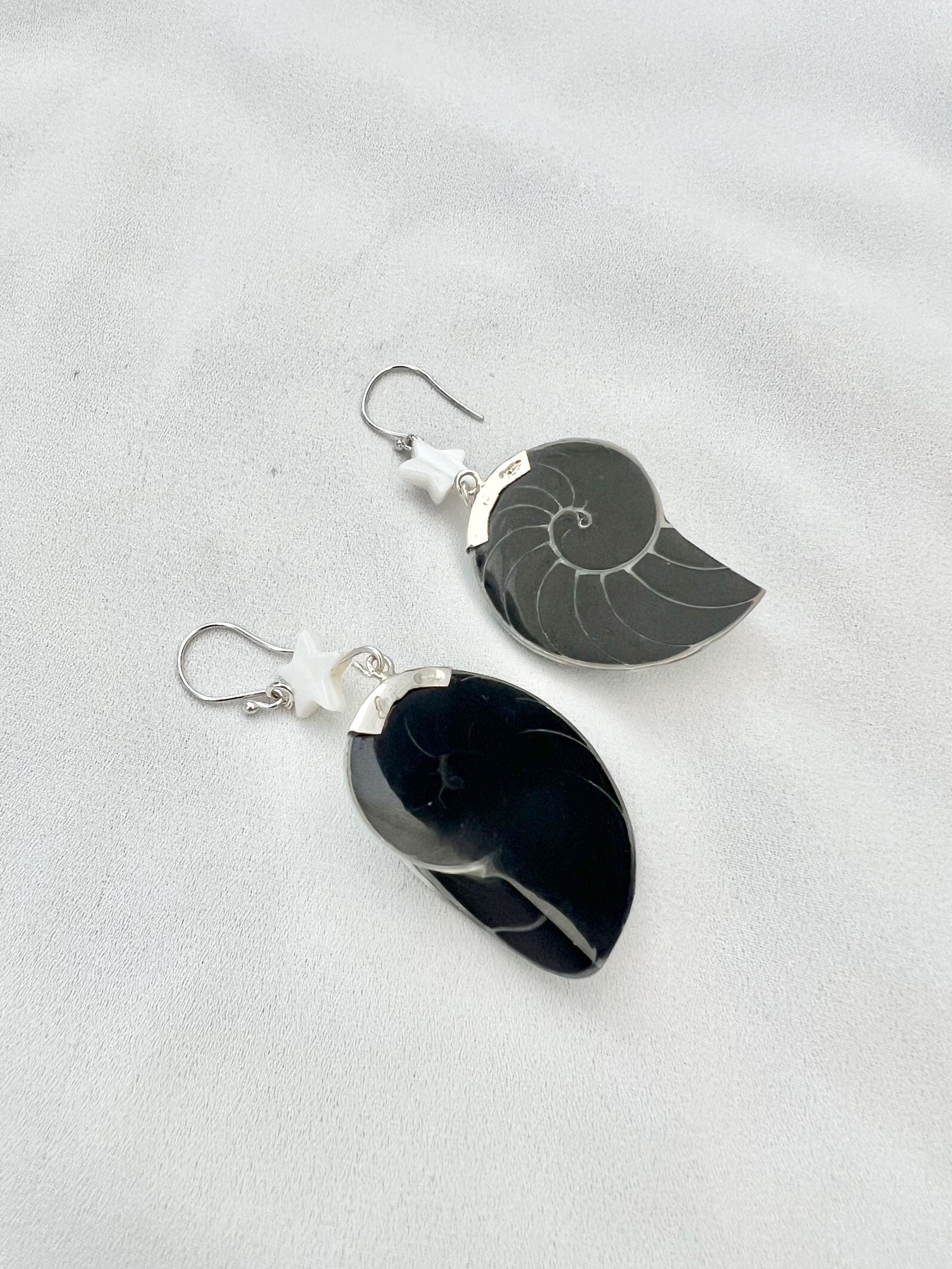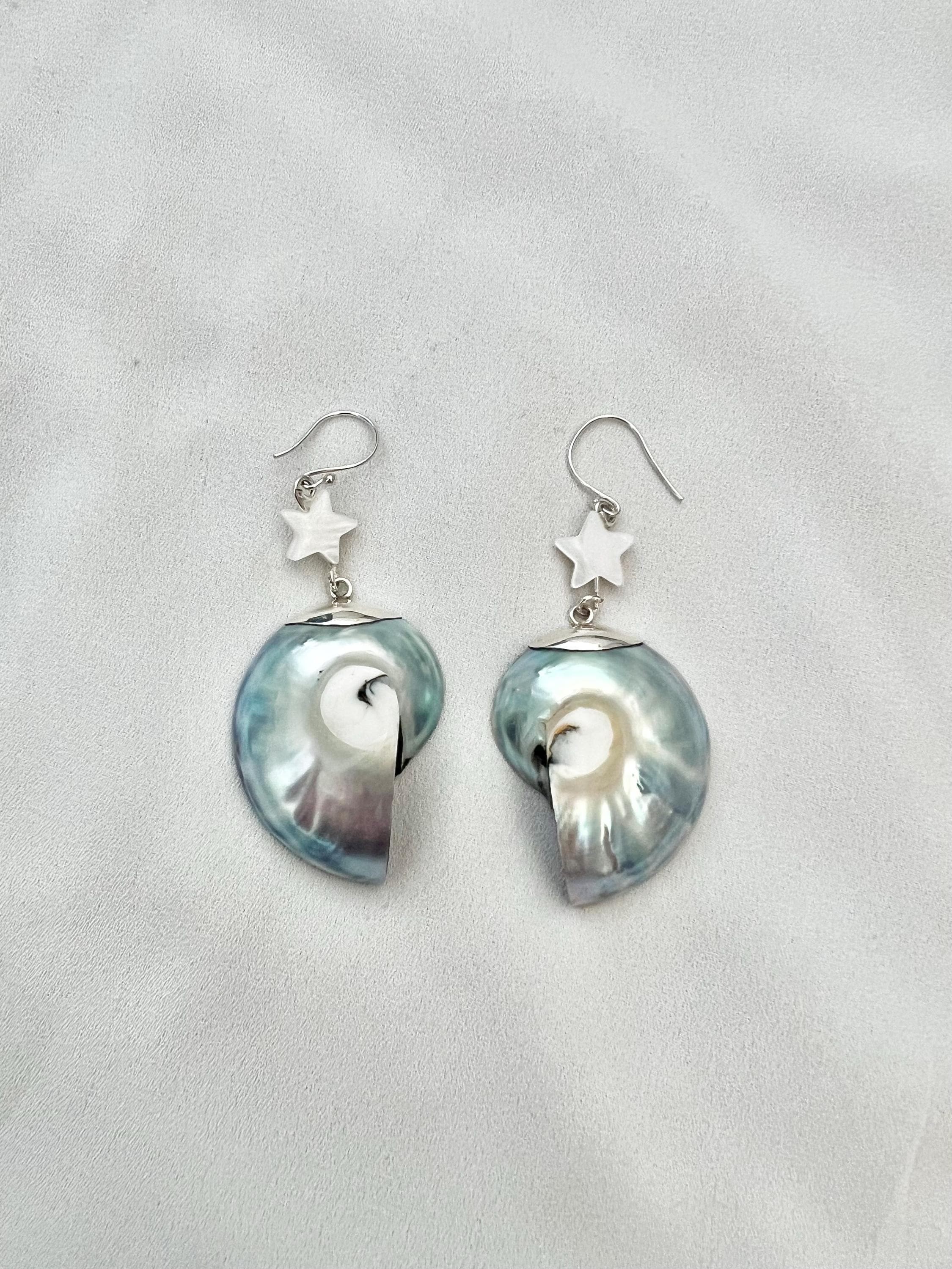 Nautilus shell star silver earrings