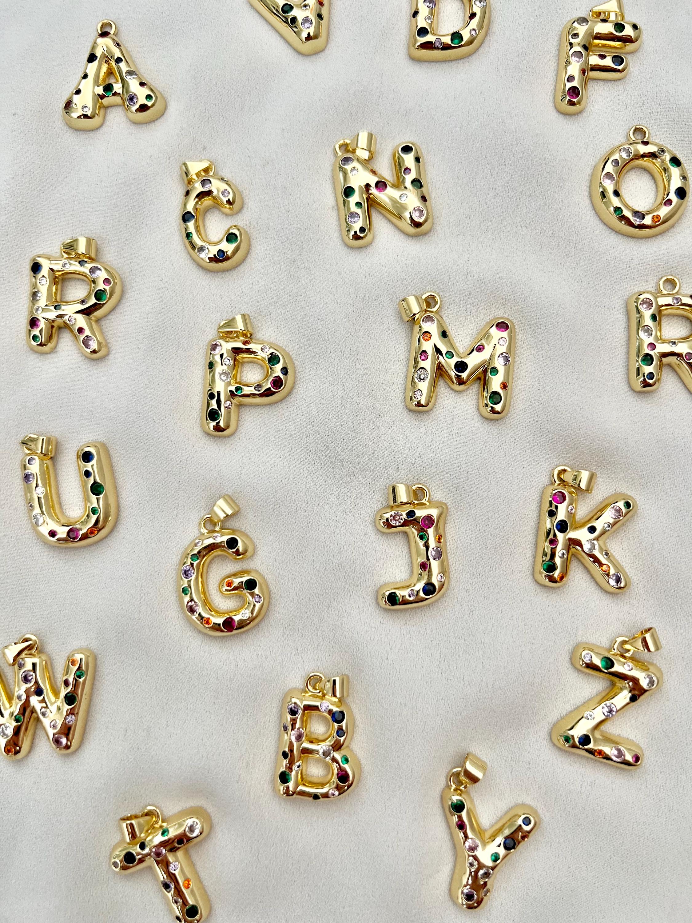 * Letter: 18 k gold plated gold with multicoloured Zircon stones